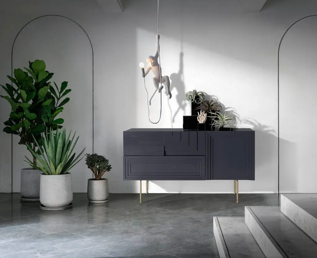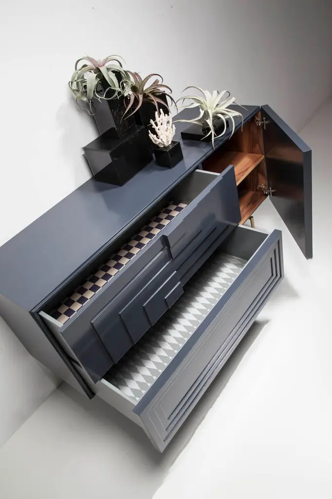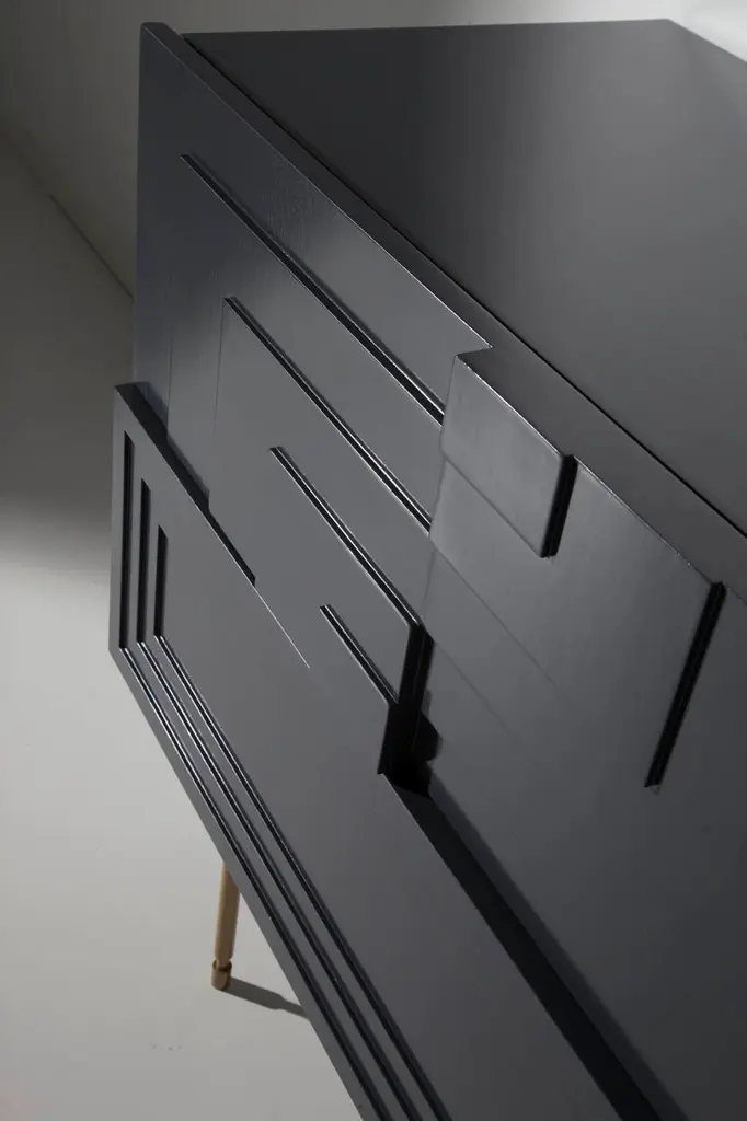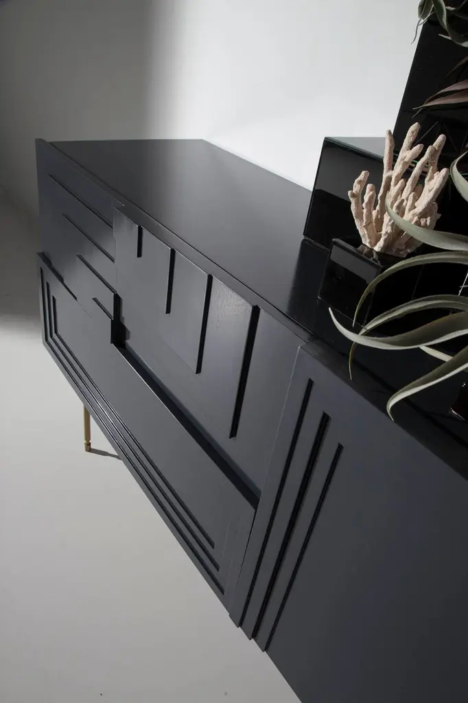Totem Chest Of Drawers by Lola GlamourDimensions: D 51 x W 160 x H 90 cmMaterials: Wood.We release pieces and inspiration for the Totem series. We have added a light gold-lacquered iron base that connects the minimalist style with the warm details of the Mediterranean. Two seemingly invisible drawers and a door for a geometric-inspired modern chest of drawers. We also incorporate fantasy and color in the drawer bottoms, an option available in the rest of our catalog.The Totem series can be manufactured in natural walnut veneer, or it can be lacquered in any of the colors in our catalog to adapt to any range or existing style.We are Félix and Désirée Ramos, brothers and product designers of our brand, Lola Glamour.We are interested in the singular, the different, the beauty, and the balance of color and materials. We have the ability to observe and the ability to translate any beautiful object into a piece of furniture.We are proud of having created our own style, a way of understanding design, which allows us to tell stories and connect with the souls of people and spaces.Lola Glamor is a Spanish company from Soria, which has designed and manufactured unique furniture in noble woods, with artisanal construction and extraordinary finishes since 1995. Artistic furniture that is customized in size and finish according to the client's needs.We offer original furnishing solutions for professionals and individuals from any country in the world, mixing materials, volumes, motifs, and colors that achieve their own style.We are, above all, the sum of a team of people who contribute their dedication and commitment to a unique level of demand, detail, and quality.