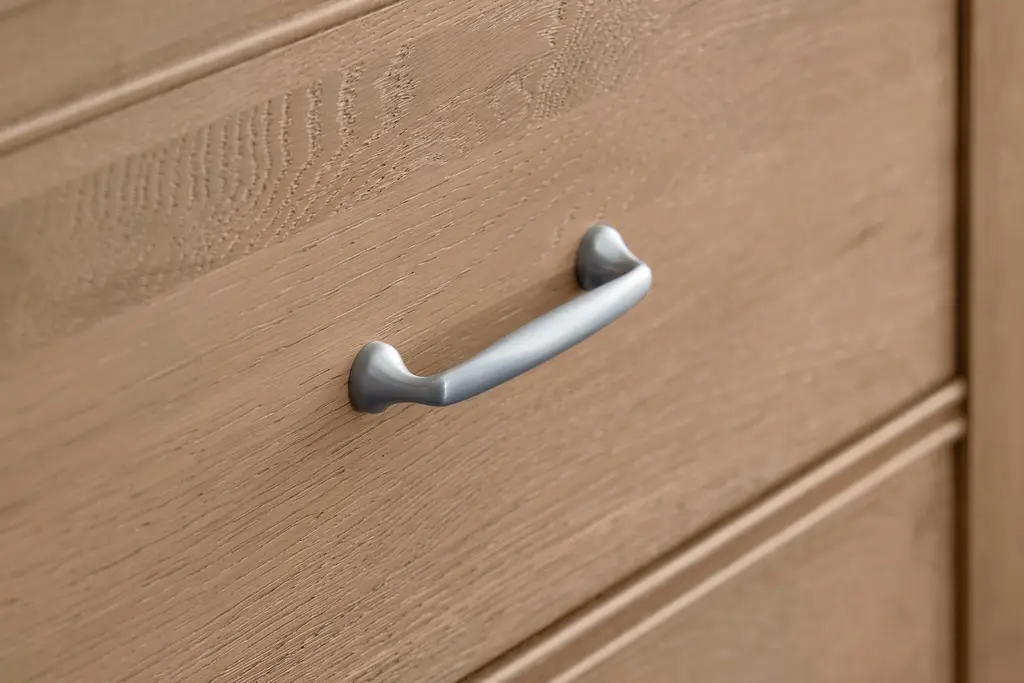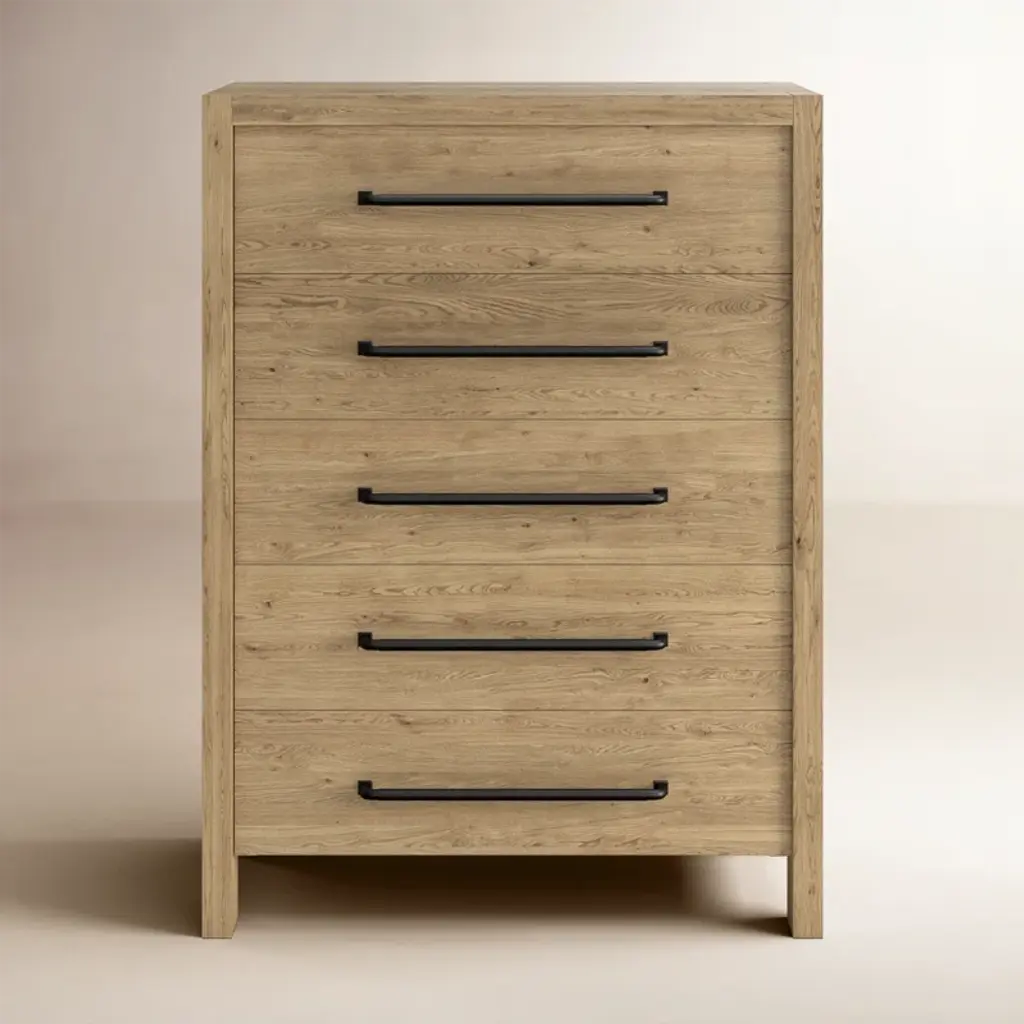 5 drawer chest features a modern reveal beneath the top and classic beaded rails; blending contemporary and traditional design.