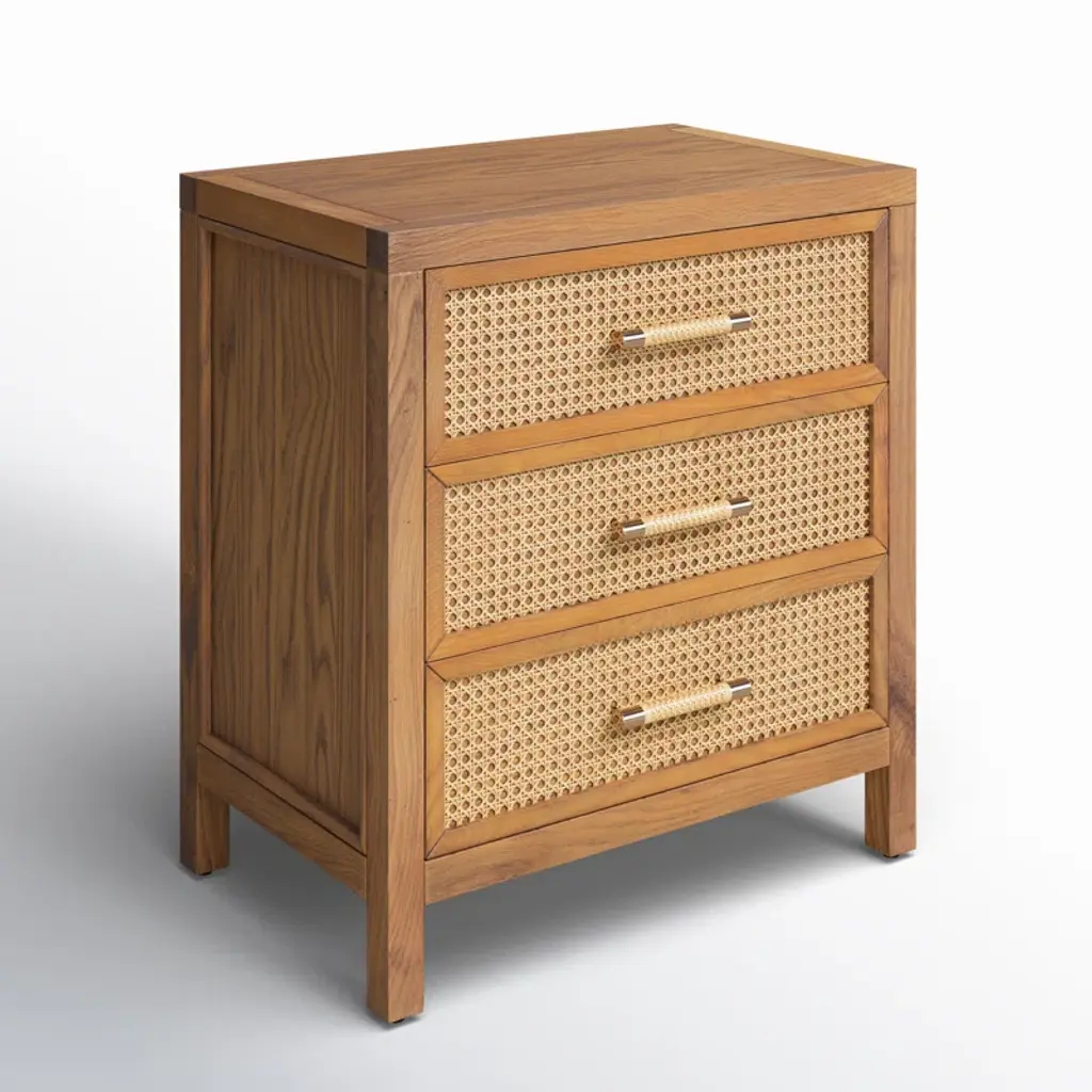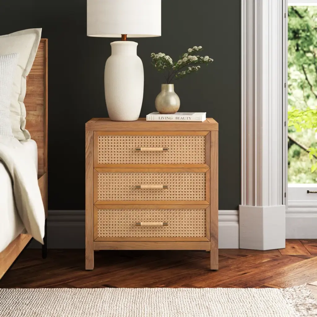 The neutral tones and natural materials bring in both warmth and beauty. With careful attention to detail, the natural cane is laid over a solid oak frame to ensure durability while bringing out a subtle richness from the oak. Three spacious drawers make this multi-functional piece perfect for your living room, bedroom, or entry.