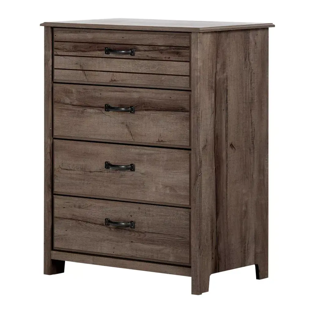 Classic Lines And Finish The furniture in our Ulysses collection will blend perfectly with your kid’s classic style room – or even your own! These pieces, with their rich, timeless finish, will add a touch of distinction to your decor. Their great design and handy storage mean you’ll enjoy them for years to come. Practical Storage And Organization With tall, stacked drawers, this dresser from the Ulysses Collection was designed just for tighter spaces! Featuring 4 large drawers with metal handles, the dresser provides plenty of room for clothes, linens or general storage keeping your space organized and neat. Included with metal slides for easy and quiet use, there's no wrestling required to access your belongings. 5-year limited guarantee South Shore is proud to stand behind this 4-drawer chest dresser with an exclusive 5-year limited guarantee. Shop with confidence knowing your purchase is always covered. All our products meets or exceeds North American safety standards and our packaging are tested and certified to reduce the risk of damage during shipment. There is a wall anchor kit included in the box to prevent tip-over incidents, thus ensuring your family's safety. This item is shipped in 1 box, make sure to have a friend with you. Assembly is required by 2 adults and tools are not included. If you have questions regarding this product or need assistance do not hesitate to contact South Shore Furniture 7 days support. You can reach customer support by phone at 1.800.290.0465 or you may chat with an agent live at: www.southshorefurniture.com. This product is made in North America with laminated particleboard. Accessories not included. Overall Width: 31.25 inches Overall Height: 40 inches Overall Depth: 19.5 inches