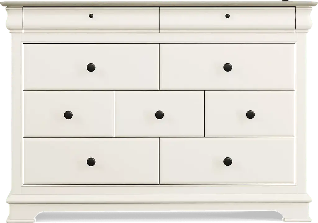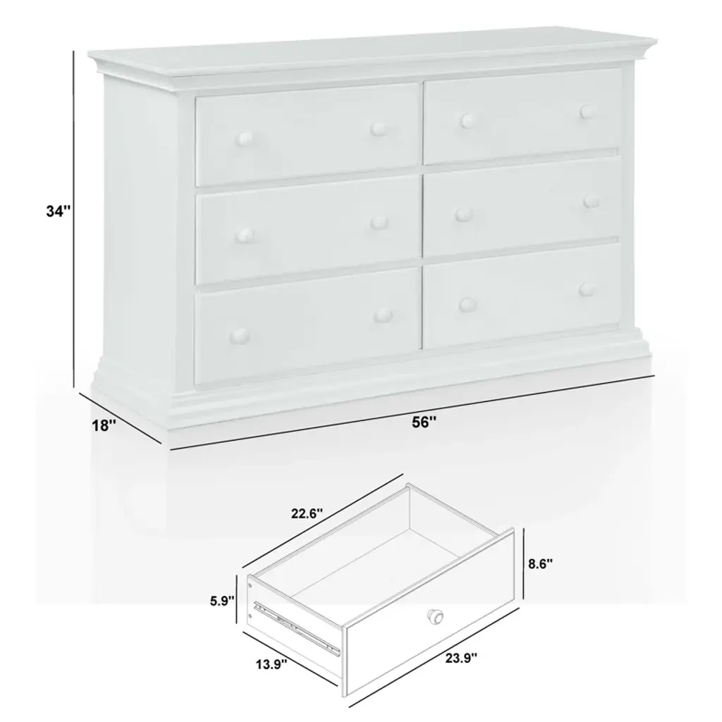 The Universal 6 Drawer Double Dresser by offers 6 spacious drawers and distinction in a classy casual atmosphere. With traditional curved moldings and straight lines, this double dresser will play happily in harmony with an array of styles and finishes. Fully assembled means it arrives to you ready for use! With sturdy solid wood drawer construction featuring English dovetail, and single extension side metal ball bearing glides, ensures a lifetime of use. Our matching two-drawer universal nightstand (sold separately) also compliments this dresser. Offered in multiple finishes to coordinate with any furniture finish making it truly universal for all!