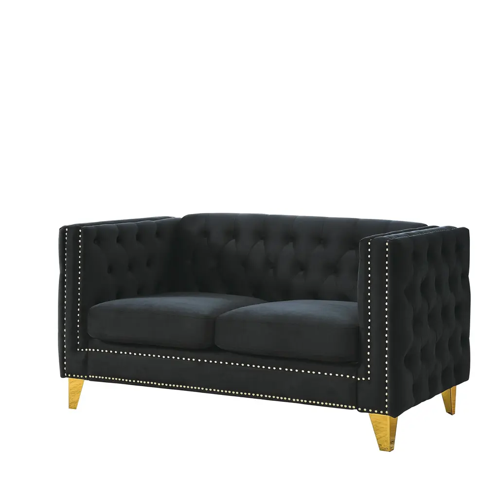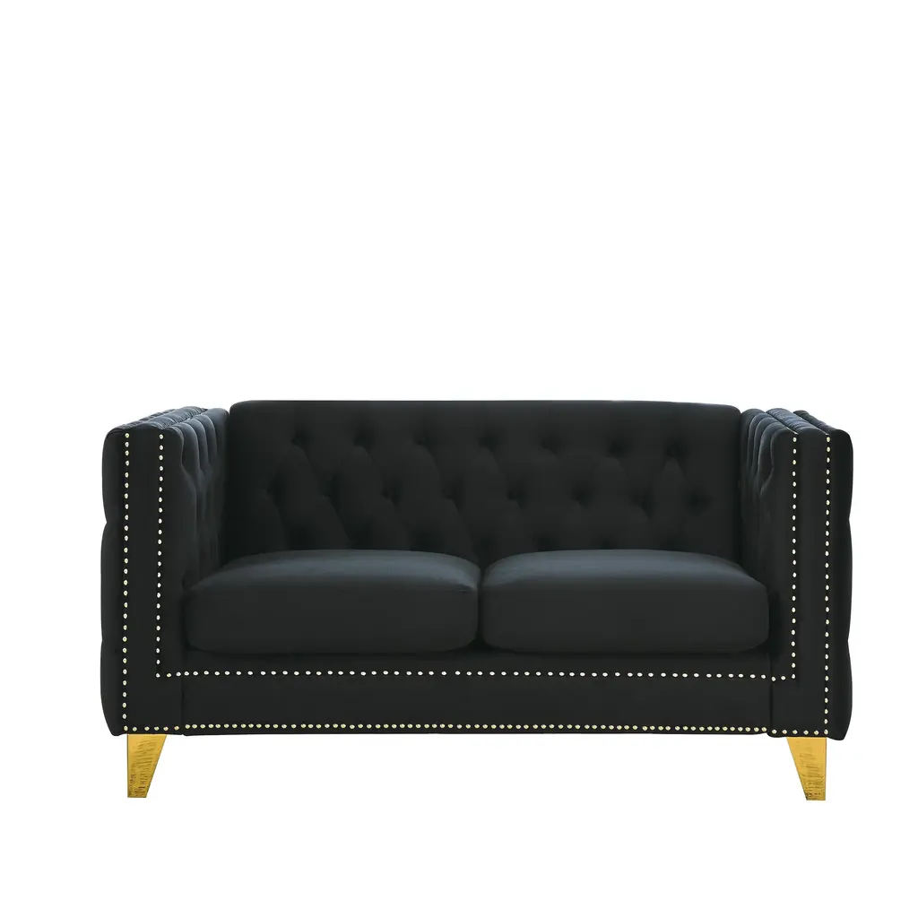 Velvet Chesterfield 2-Seat Sofa With Button Tufting And Nailhead Trim, Upholstered Couch For Bedroom And Office - Black