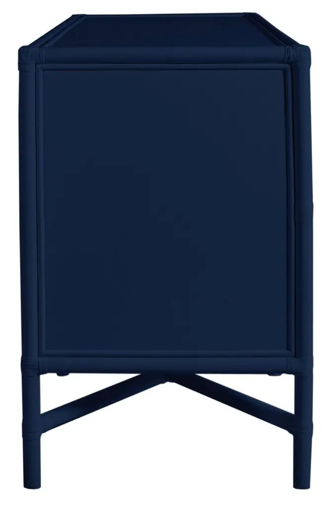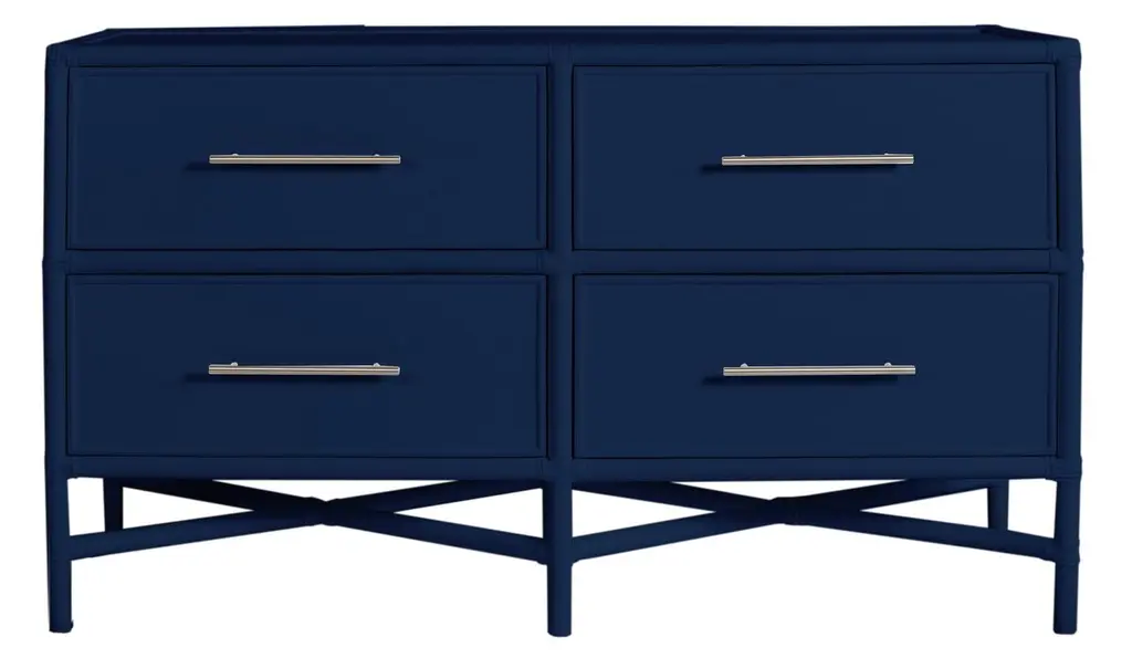 This four-drawer dresser gets much of its considerable panache from the rawhide bindings that add extra stability to the frame's rattan joints. The 10-inch-wide metal drawer pulls complement the streamlined silhouette. Finished by hand, this dresser is as much a showpiece as it is a functional piece of furniture.