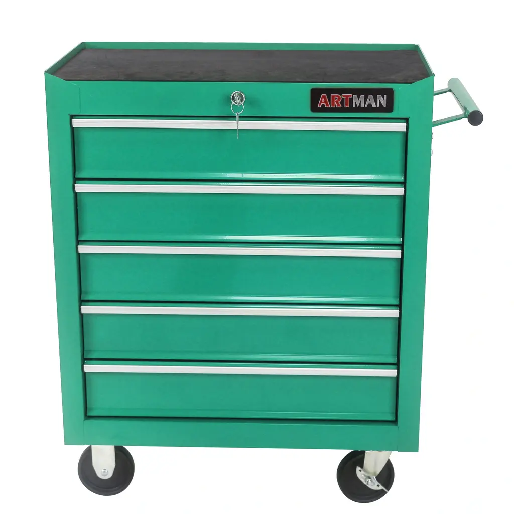 Versatile 5-Drawer Garage Tool Chest With Lock And Mobility Feature - Red