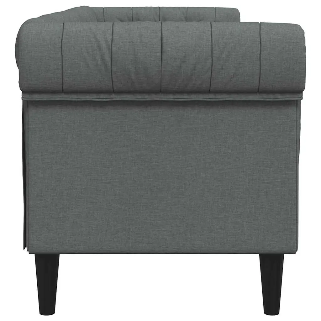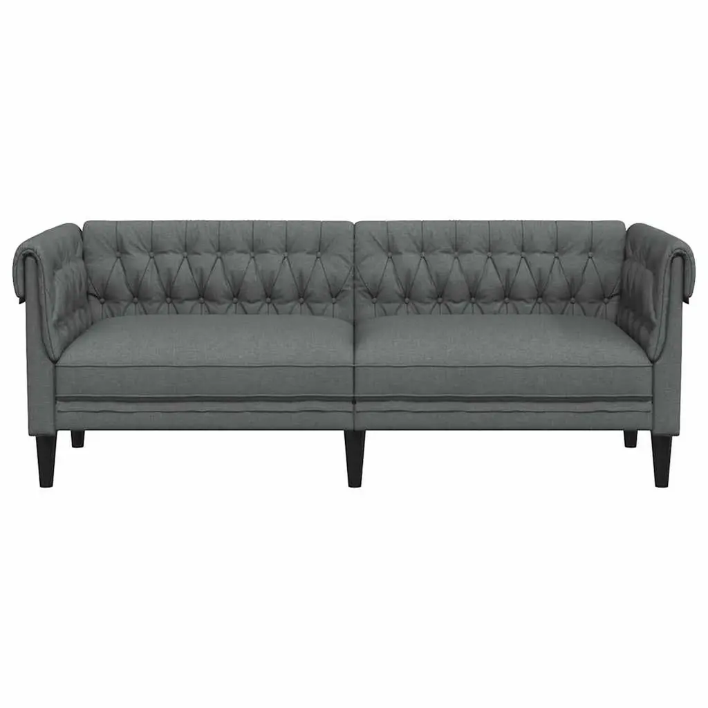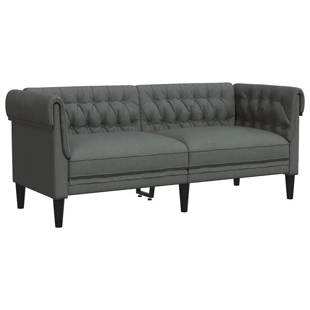 This Chesterfield sofa is a fab mix of style and comfort, perfect for indoors in your living room or office. Its modern dark grey fabric suits a range of decor styles while providing comfy seating for three, making it great for gatherings and chill time. Luxurious Upholstery: Smooth 100% polyester fabric that breathes, keeping you comfy for long seating sessions. It looks fab and wears well over time. Spacious Seating: With generous dimensions of 79.3 in. long, this 3-seater lets friends and family lounge comfortably while being a stylish centerpiece in your living space. Classic Chesterfield Design: The iconic rolled arm and deep button tufting add a touch of class, making it perfect in casual or upscale settings. Resistant to Stains: Thanks to its stain-resistant upholstery, keeping this sofa looking fresh is simple—just blot spills quickly! Convenient Maintenance: Regular vacuuming and easy blotting make cleaning a cinch, ensuring your sofa stays welcoming for any occasion.