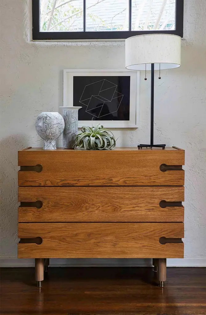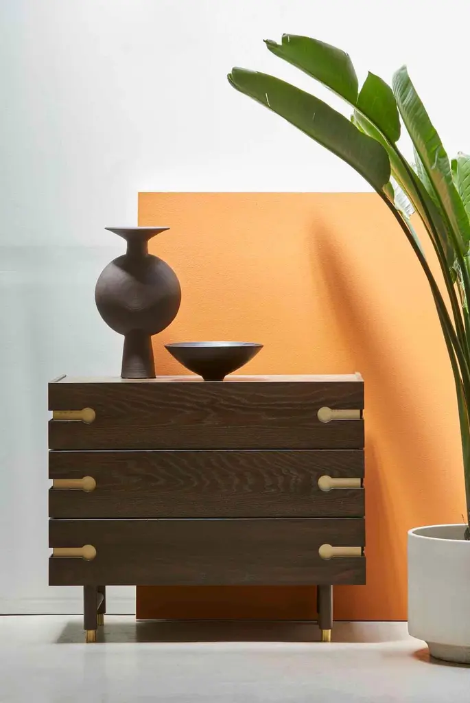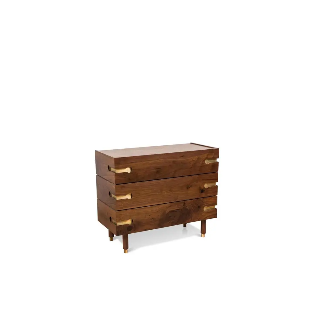 The Niguel dresser features 3 drawers, brass cap feet, and brass inlaid details.The Lawson-Fenning Collection is designed and handmade in Los Angeles, California. Reach out to discover what options are currently in stock.