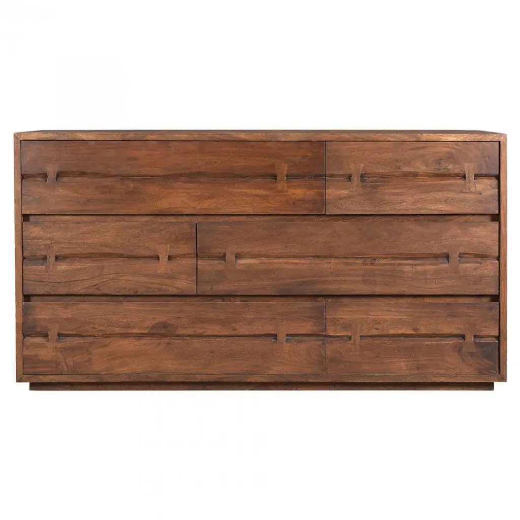 With a straightforward, clean design, and fine craftsmanship, the Celine collection brings a traditional form to your living space. With its gorgeous antique taupe finish, this 6-drawer wide dresser gives off a textured rustic appeal while adding both function and subtle sophistication.