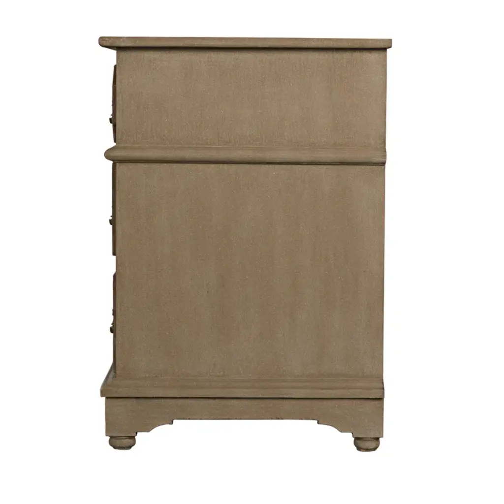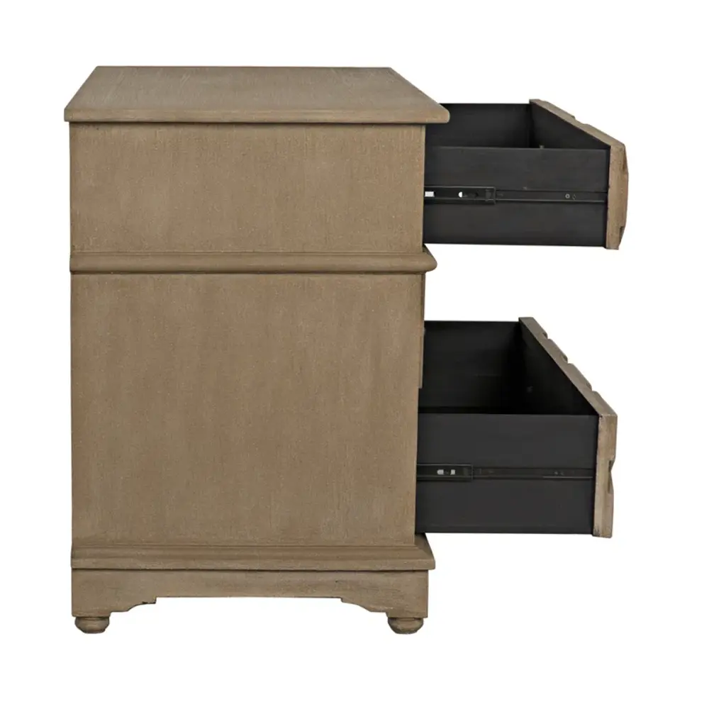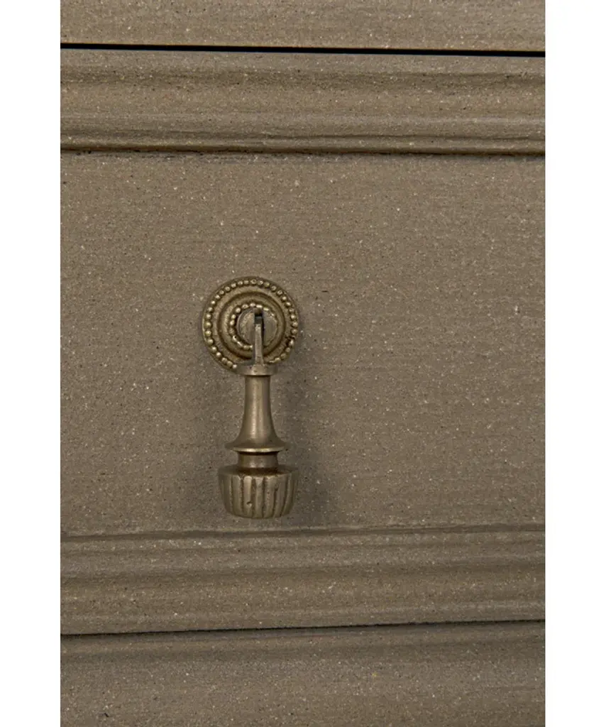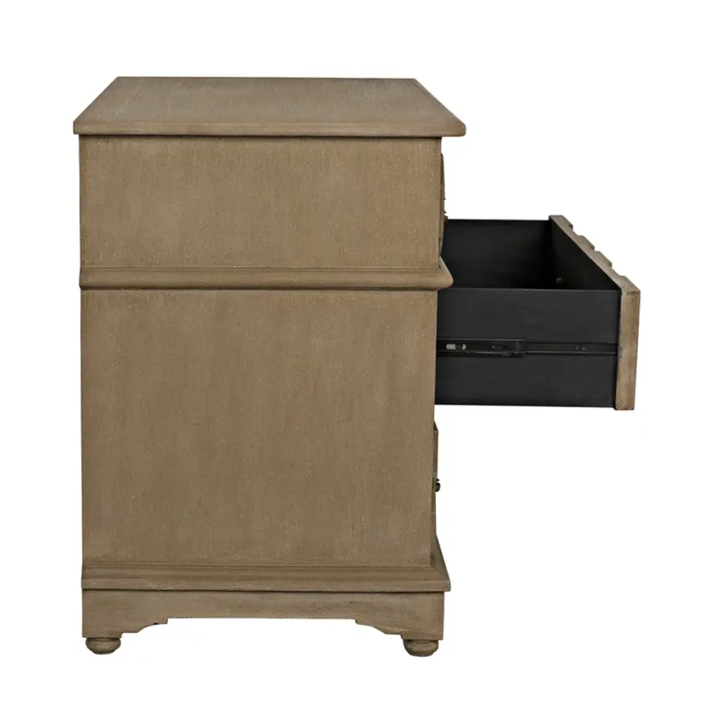 This dresser effortlessly combines classic design with practical functionality. Made from a blend of solid and engineered wood, it showcases the rich texture of mahogany, offering both beauty and durability. With three spacious drawers featuring roller glides and removable brass handles, it provides ample storage while maintaining a sleek, horizontal silhouette. The dresser's weathered finish adds a touch of rustic charm, making it a versatile piece for any bedroom.