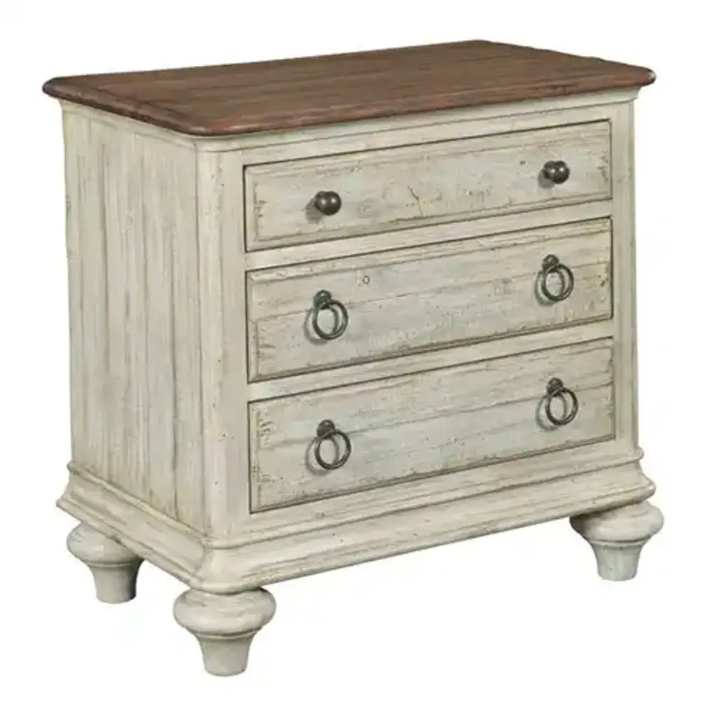 Elevate your bedroom with the Baldwin Bachelors Chest from the Weatherford Heather Collection. Crafted from genuine New Zealand Pine, this solid wood piece exudes warmth and character. Three spacious drawers offer ample storage for your essentials, while a convenient pull-out shelf provides extra surface space when needed. The integrated night light adds a soft, ambient glow, perfect for evening ambiance or late-night navigation. An electrical outlet discreetly placed on the back of the case keeps your devices charged and within reach. Thoughtful hand-holds make moving this elegant chest a breeze. The Heather finish complements various decor styles, making this versatile piece a charming addition to any bedroom, guest room, or living space.