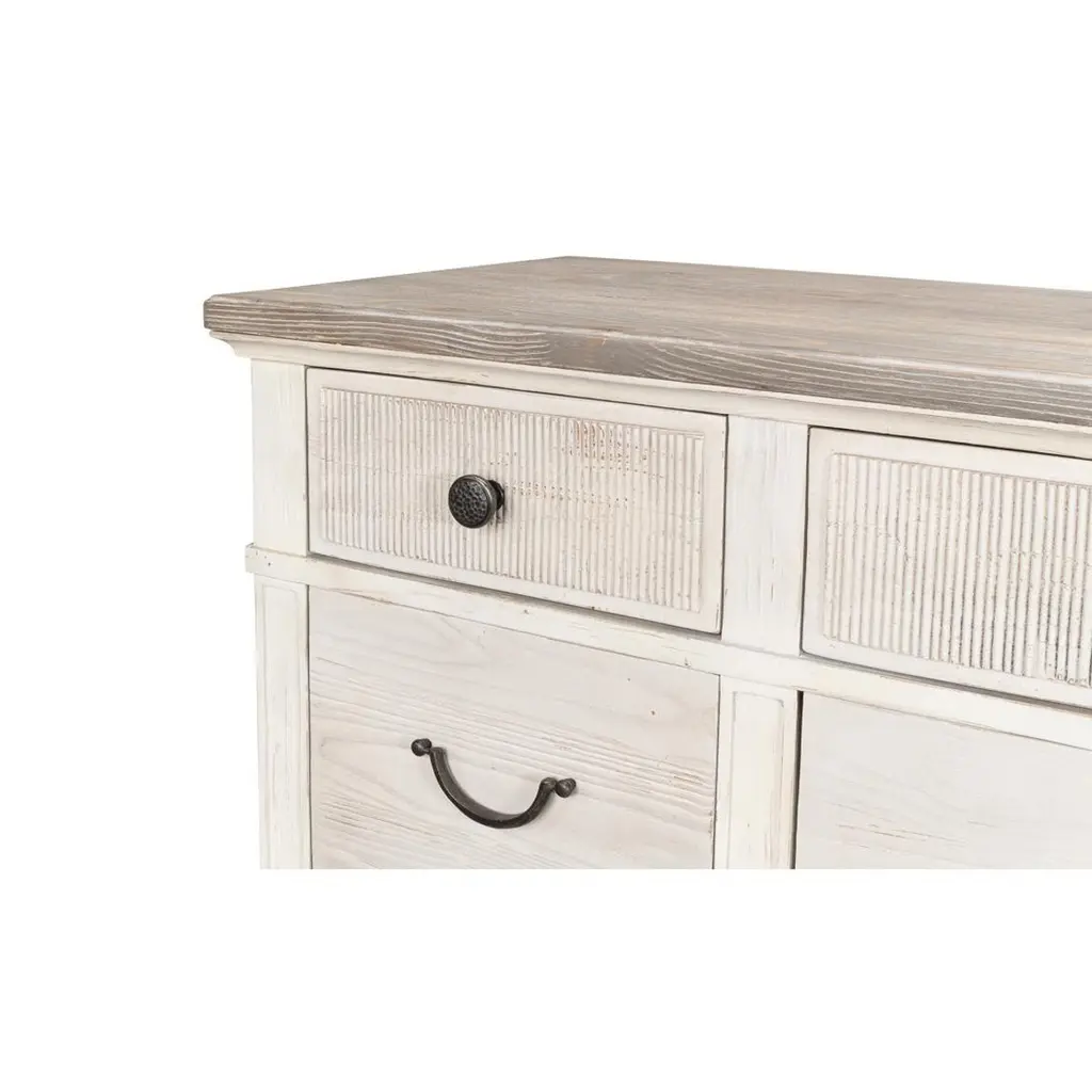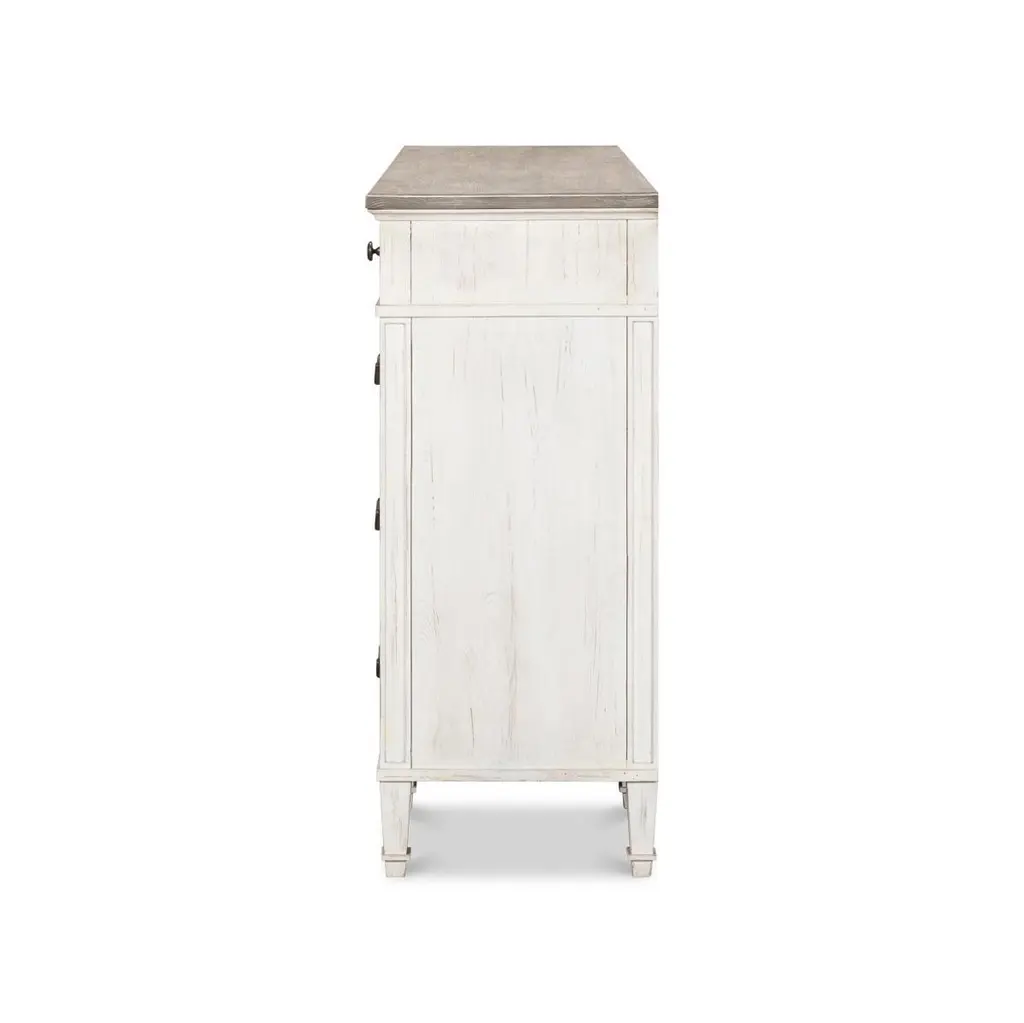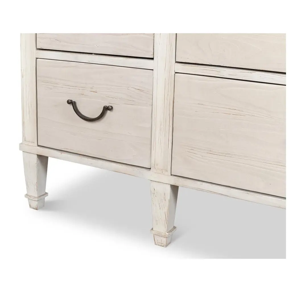 This dresser is meticulously crafted to embody the essence of a seaside retreat with its light, weathered finish and classic clean lines.With 12 graduated drawers and an abundance of storage that won't overwhelm your space. Made from beechwood, in a white painted finish to the case and gray moonskin finish on the top. Crafted for versatility, the dresser is not just a fit for coastal bungalow vibes; it can seamlessly adapt to a wide array of interior styles, from country chic to contemporary minimalism.Dimensions: 63" W x 19" D x 45" H