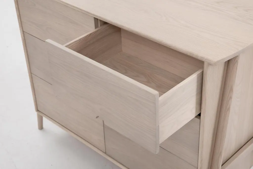 The Woodbine Dresser is extended from the Woodbine Sideboard. We took the same external leg structure, curves, drawer pulls, and details and faithfully applied them to this piece. We also kept the same exposed dovetails and tenons everywhere to highlight the woodwork. Available in 3 and 6 drawer versions.Solid white ashHandcrafted using traditional joineryMetal drawer hardwareWe make each piece by hand from solid wood, not veneer or engineered wood. Because every tree is different, you may see variations in color and pattern. Our tenna oil and water based finishes are resistant to spills and stains and will sustain for years with proper maintenance. Our pieces have been used in a variety of hospitality settings from hotels to retail spaces. Swatches available upon request.