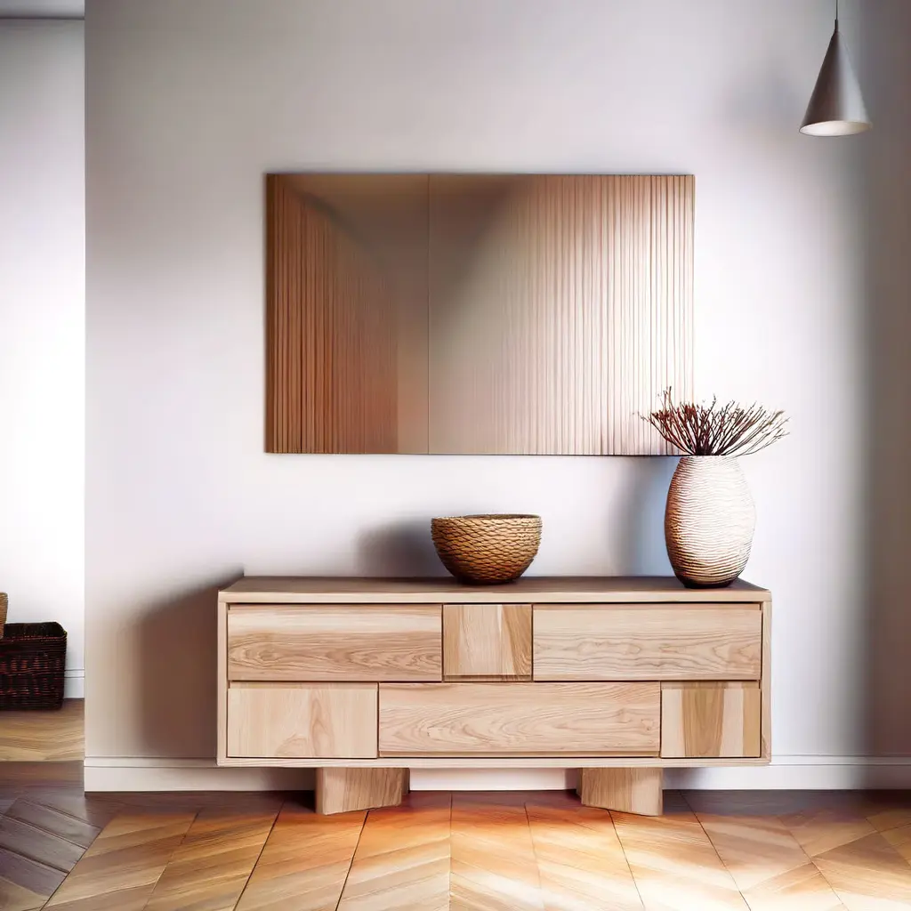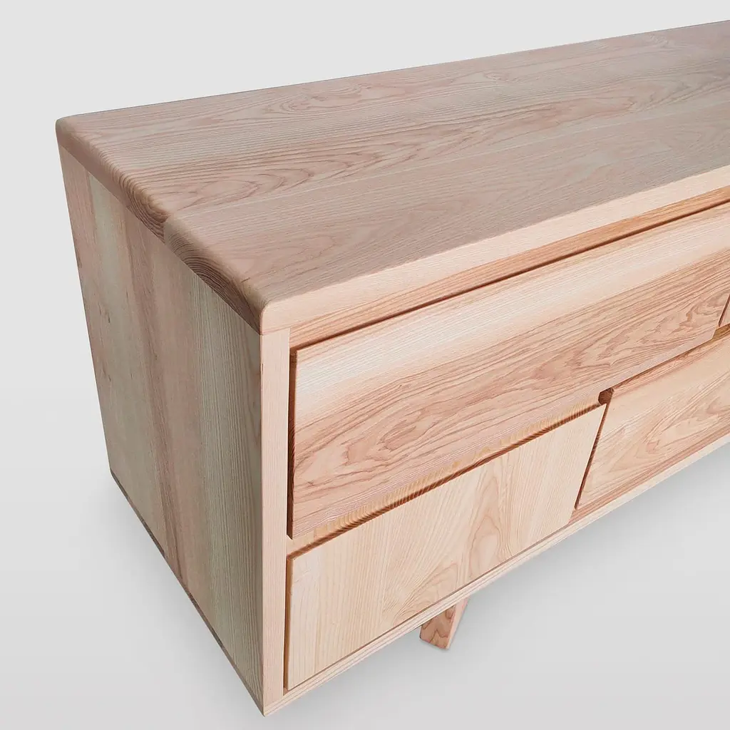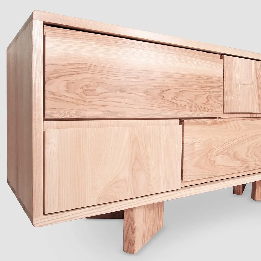 Enhancing the traditional values of unconstraint simplicity of forms, this dresser is a superb expression of impeccable workmanship. The linear solid ash frame has six drawers in different sizes equipped with a Blumotion closing system. A clear, non-toxic, water-based finish and beeswax polish adds an additional natural element to this dresser that can be customized in other sizes, wood essences, finishes, and number of drawers upon request. The diagonal legs are each equipped with four invisible "Clamex" joints which guarantee high stability.