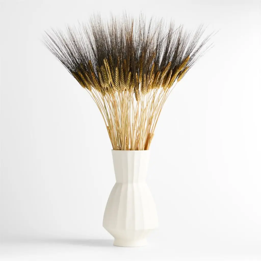 Sun-dried stalks of stunning bearded wheat bring drama to your autumnal arrangements. Displayed on its own or combined with other fall botanicals, our tall wheat bunch stands out with its height and its spectacular near-black beard. Place the dried wheat in a glass or white vase for a modern take on seasonal decor, or display in one of our wood or woven baskets to highlight the harvest vibes.