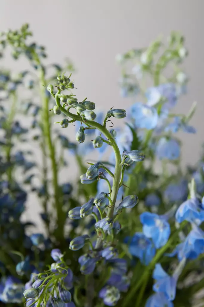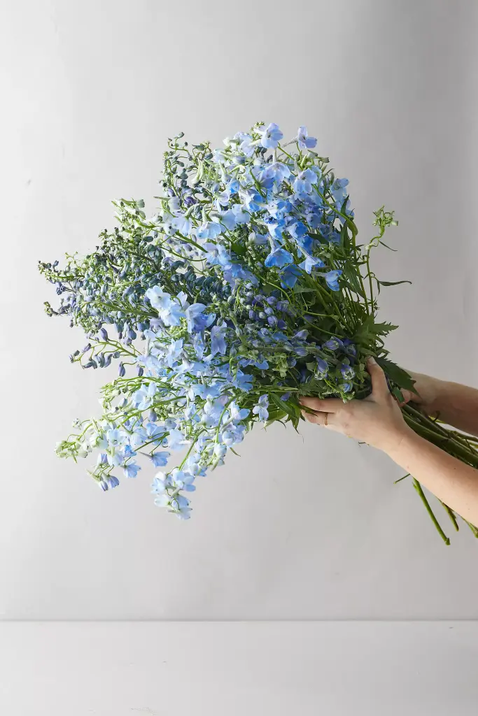 Found only at terrain, each of these vibrant blue delphinium bouquets arrives direct from our grower, delicate, feminine, and graceful. - A terrain exclusive - Fresh-cut blue delphinium stems - Vase not included - Remove flowers immediately from bouquet boy and rehydrate. Cut 2-3â from bottom of stem and place in warm water. Stems will absorb a significant amount of water in the first 24 hours; add more water as needed. Keep cut end of the stem constantly submerged - Avoid heat and direct sunlight - USA 24-36"H, 20-32"W Terrain is a garden and home brand deeply rooted in nature and plant life. From weather-ready planters and outdoor furniture to artisan-made wreaths and hand-poured candles, their curated product assortment explores the boundaries of life lived outside and in. With a globally conscious, locally influenced point of view, Terrain offers inspired seasonal solutions for creative living, gathering, and gardening.