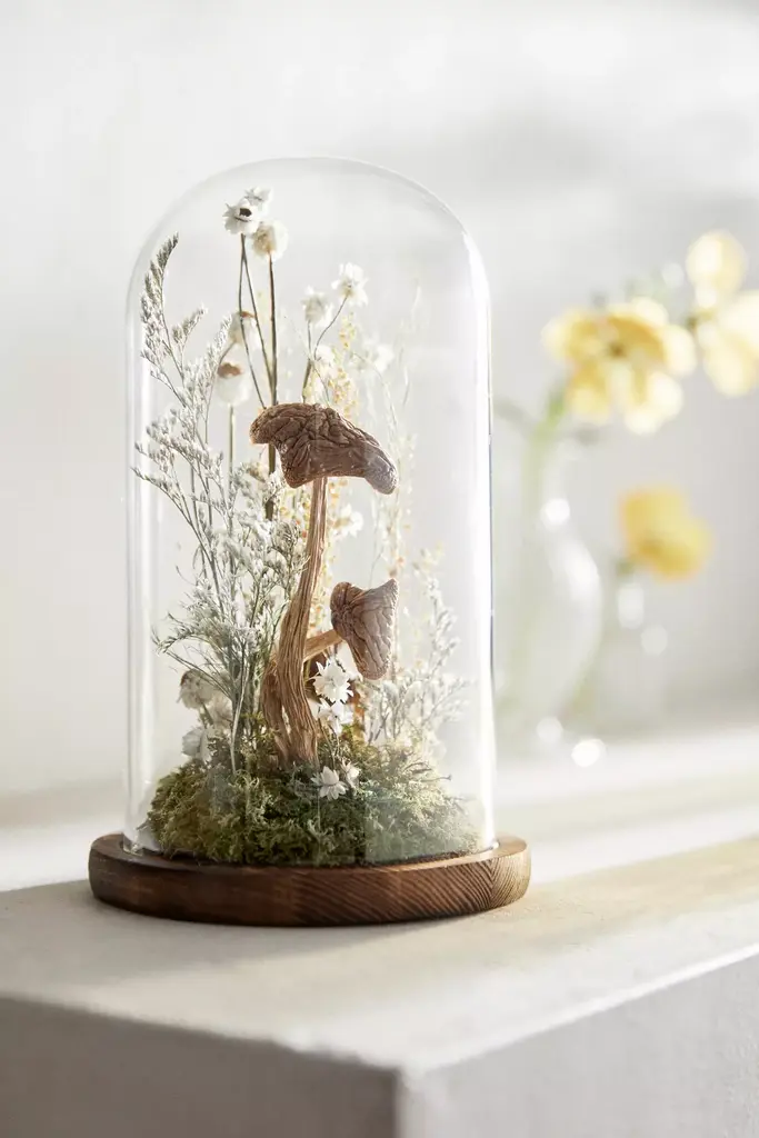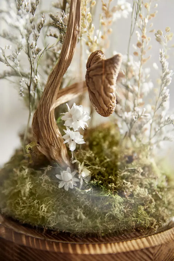 A celebration of the unexpected beauty of foraged, preserved and dried botanicals, this fungi-filled terrarium is finished with a vibrant mix of dried flowers and grasses, and other natural elements. A natural art piece for the home.About Right Side Hand: founded by Nina Booth, Right Side Hand is a floral studio in Sacramento, CA. Nina draws inspiration from Northern California's beautiful valley and mountain scapes. Each handmade design gives a glimpse into a whimsical story using sustainable local flowers, wild foraged flora, or fungi.
