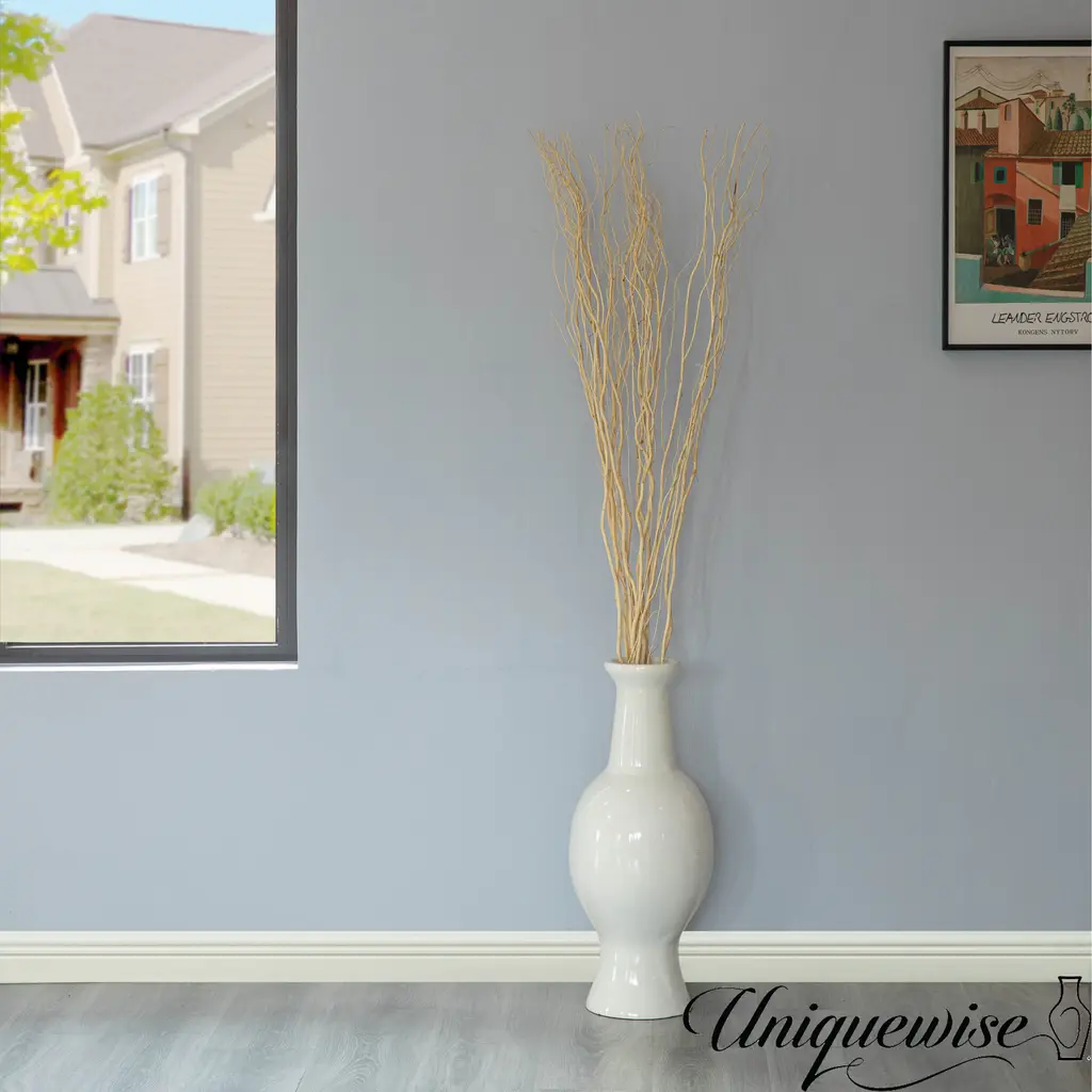 Add a touch of botanical elegance to any space in your home, without the need for daily maintenance. This special product is durable and easy to maintain. The tall and beautiful Branches are the perfect addition to your modern home decor. This bunch fits perfectly into any floor vase adding a final touch wherever you place it. The twigs are composed of real dried willow branches that will add a natural and elegant look to any place with these decorative and modern branches. You can also use these willow branches to make wreaths floral crowns, vase decorations, room decorations, wedding decorations, etc. Please take into consideration: These are the branches only the vase is not included in the purchase. You may pair these twigs with tall wispy grass, silk decorative flowers, and any style of floral arrangement, or you can display it into any vase for a full standout look. Tall and ascetic, these make quite the statement. These branches are a great choice for anyone looking to add a touch of modern elegance to their home.