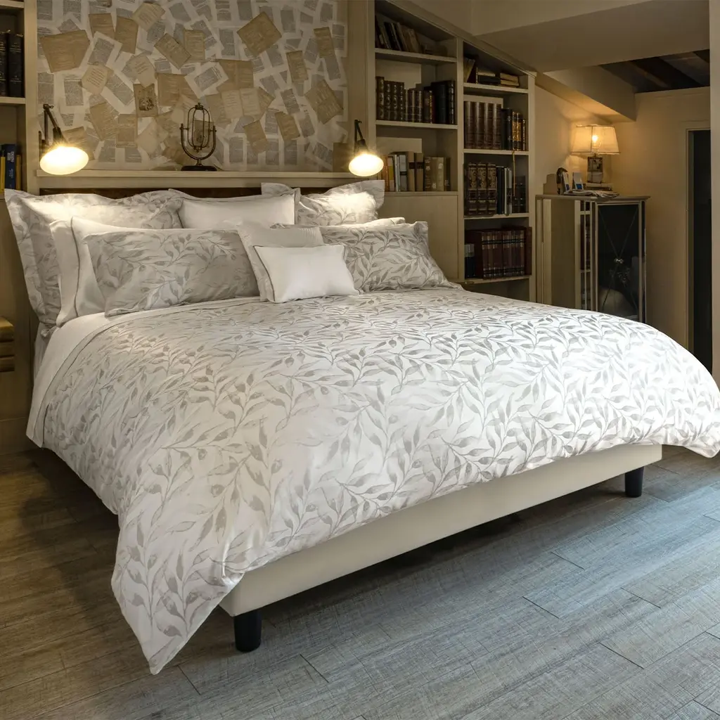 Nature is the protagonist of the Argentario Bedding Collection. The movement of the delicately intertwining leaves forms a very relaxing design. The subtle colors and the play between matte and glossy, typical of the fine jacquard fabrics by Signoria, make the Argentario line suitable for any bedroom furniture. *Duvet and shams sold separately.Available in Standard, Euro, and King sizes, the Argentario Sham has four 2-inch flanges neatly finished with a simple hem. The Argentario duvet cover is backed with silky cotton sateen in a coordinating color and is neatly finished with a simple hem and button closure. Made in Italy.