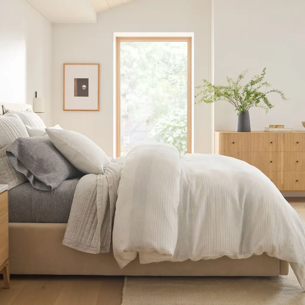 European Flax Linen Graduated Stripe Duvet Cover & Shams