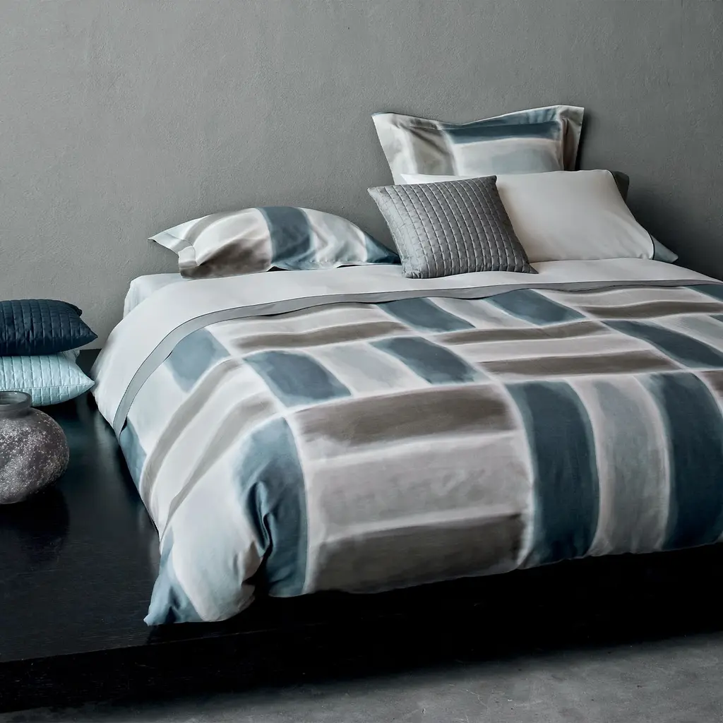 The Gouache Duvet and Shams Bedding Collection is inspired by a famous painter known for his brush strokes which fill up the rectangles, raising them to a metaphysical dimension. The result is a contemporary canvas of colors in this luxury bedding. The traditional printing is made on sublime long-staple cotton sateen 300 t.c. *Duvet and shams sold separately. The Gouache Duvet Cover is backed with silky plain cotton sateen in a coordinating color and is neatly finished with a simple hem and button closure. Available in Standard, Euro, and King sizes, the shams are neatly finished with a simple hem. Made in Italy.