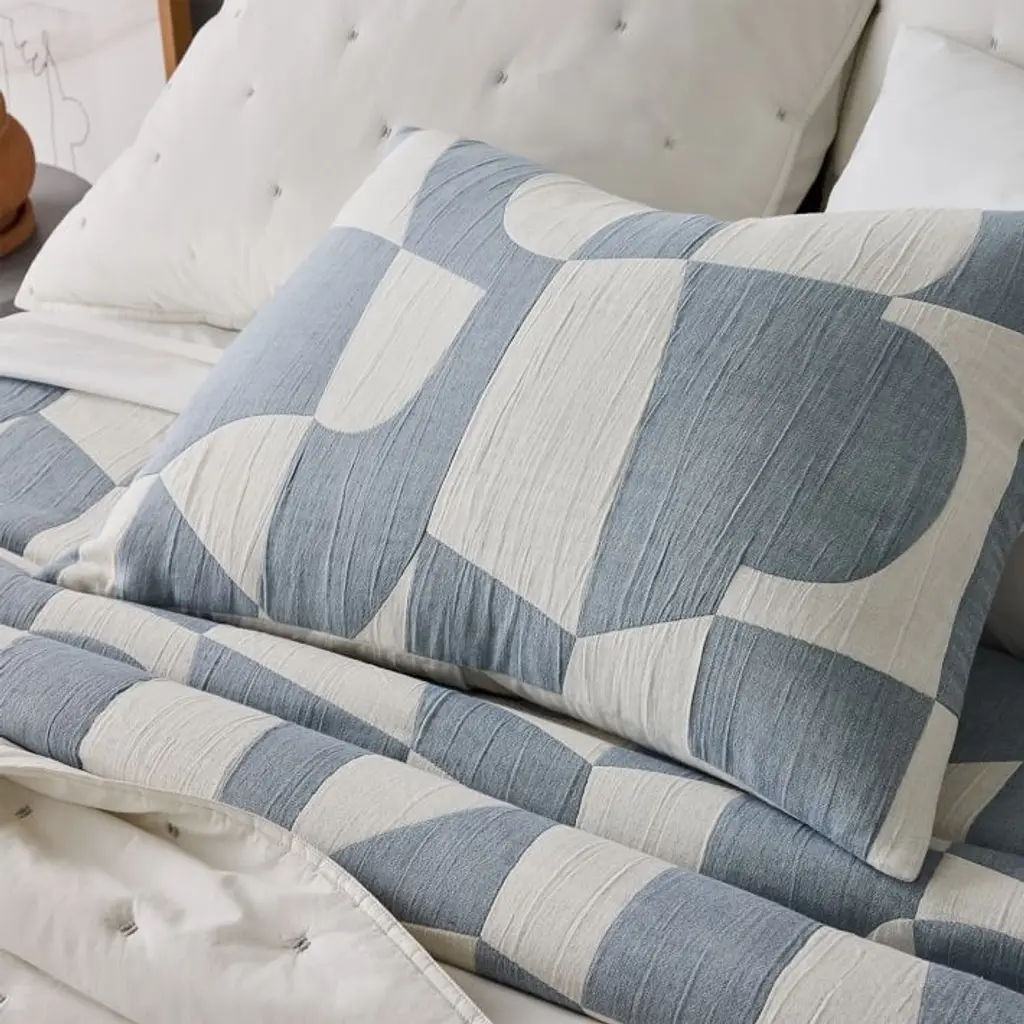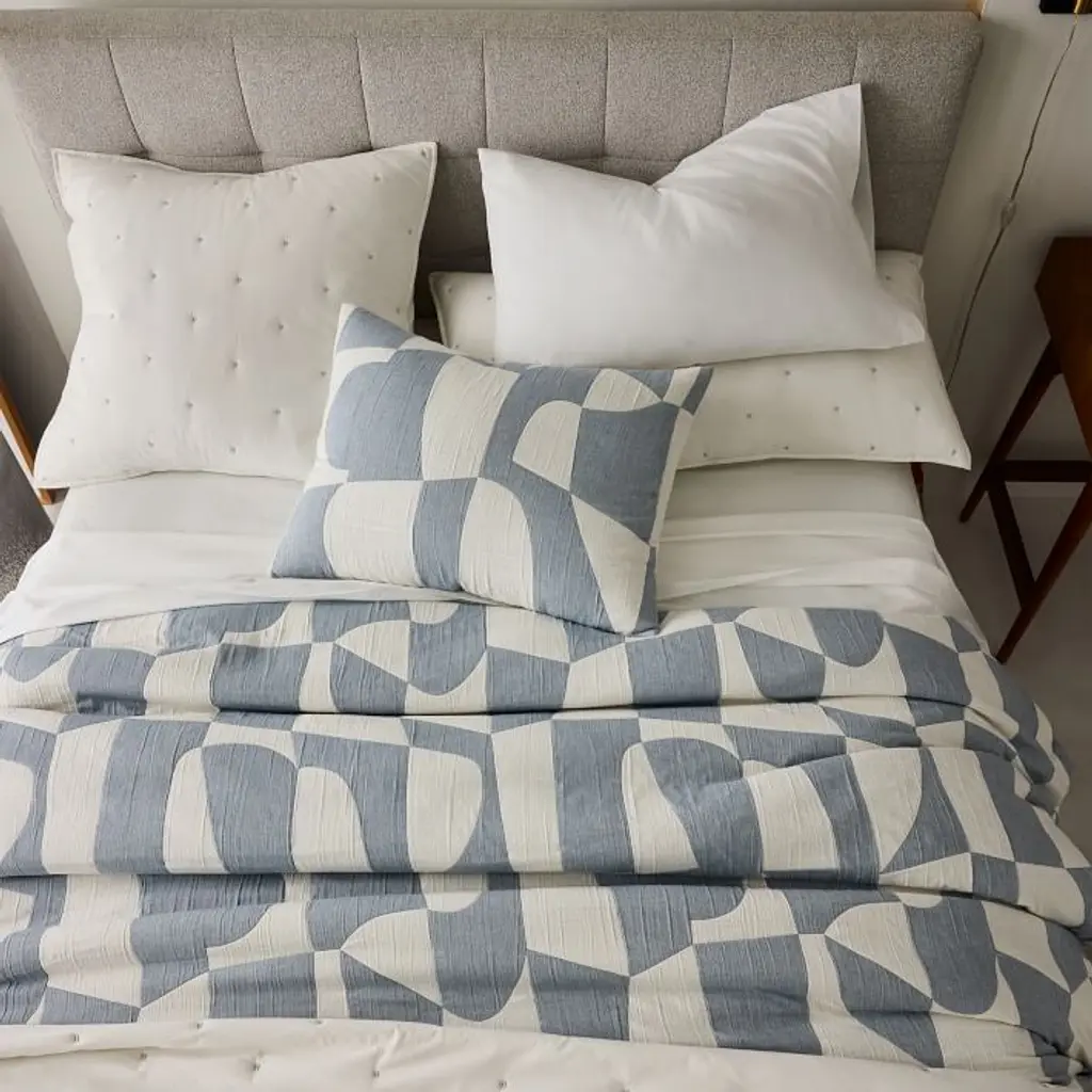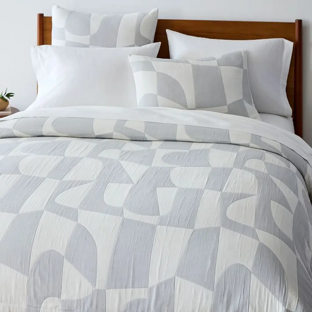 The allover geometric pattern of our Modern Shapes Duvet Cover adds an artful touch to your bedding. Made from soft organic cotton in a Fair Trade Certified™ facility, its textured matelasse fabric has a heavier, luxe feel, so you'll never want to get out of bed. Contains 100% organically grown cotton certified to the Organic Content Standard. Bureau Veritas TE-BVUS0027. 200-thread-count. Duvet Cover: Button closure; four interior corner ties keep it in place. Shams: Envelope closure. Made in a Fair Trade Certified™ factory, empowering workers who made it. Made in Pakistan.