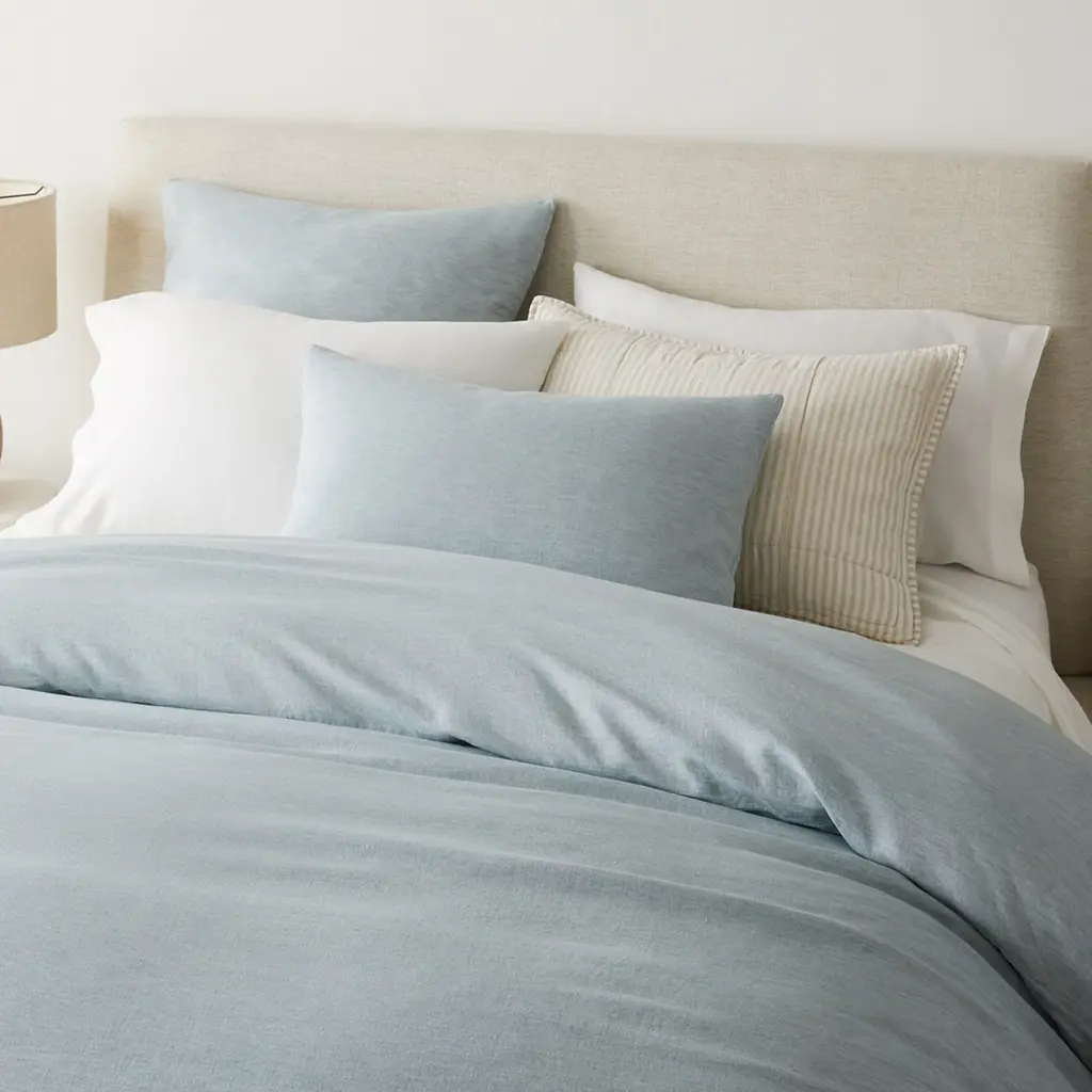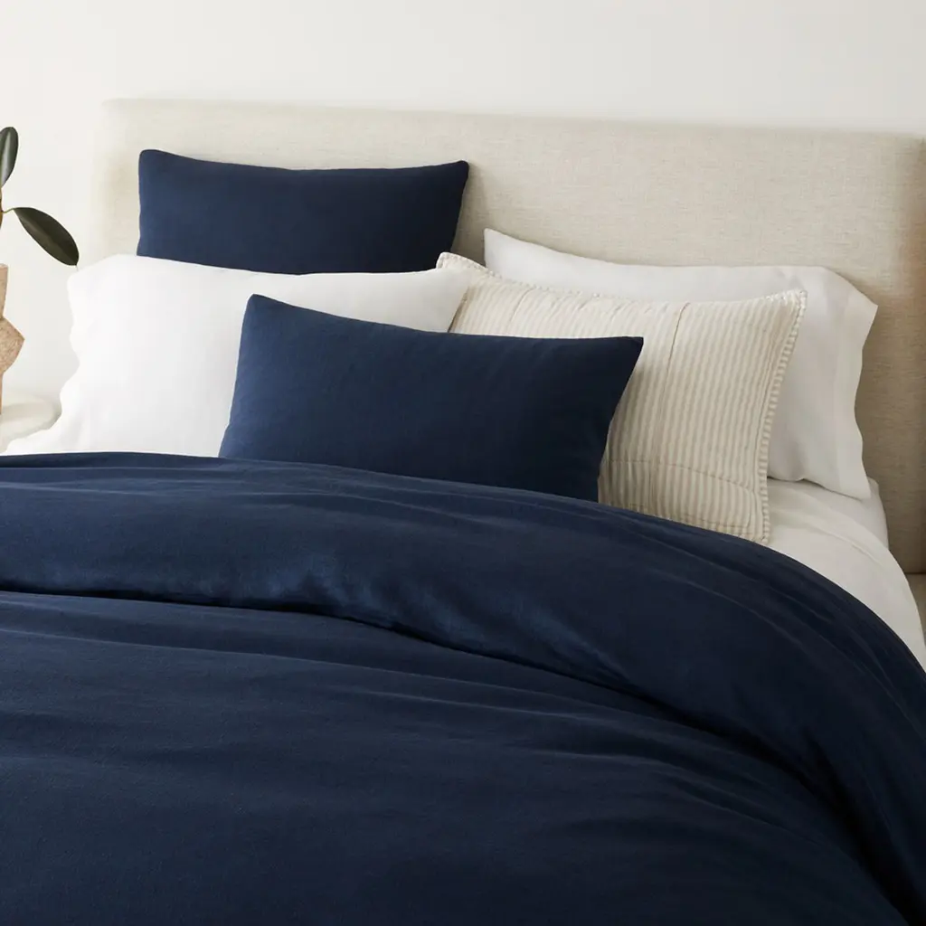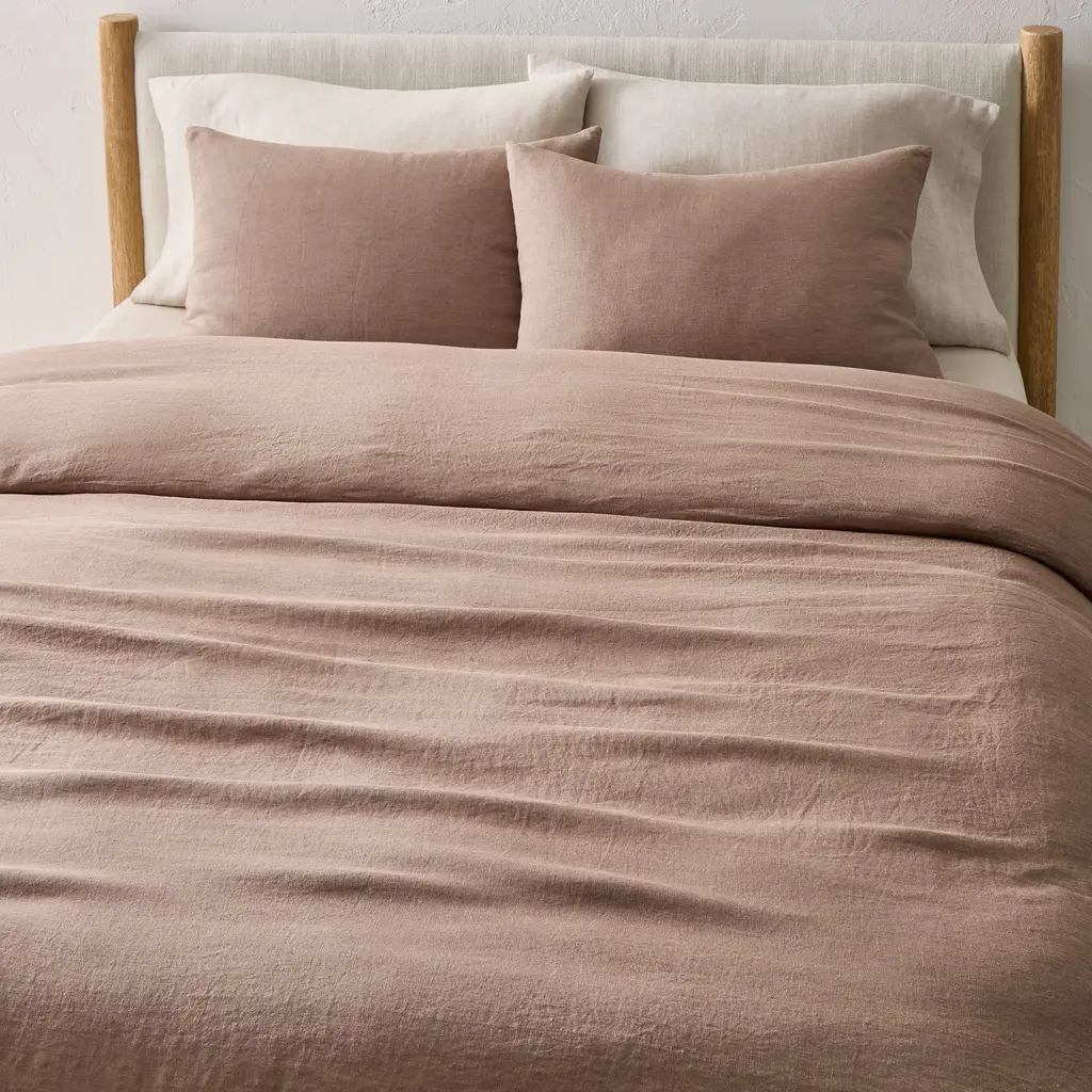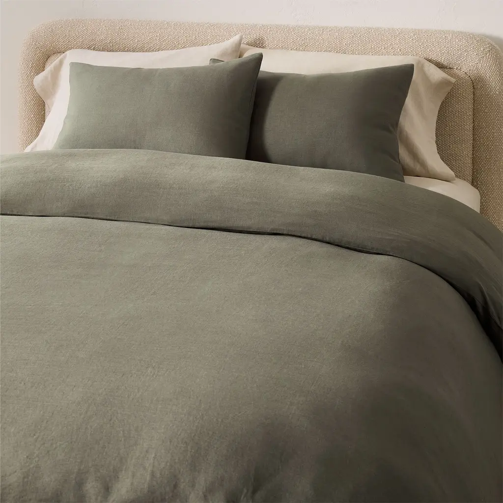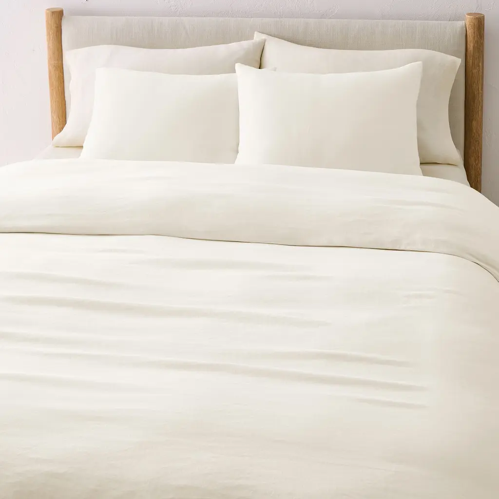 Woven from 100% premium quality European flax linen. Breathable and absorbent, so it's a dreamy option for any season. Garment-washed for a luxe, lived-in texture that gets softer with time. Hidden corner ties prevent bunching and keep your duvet in place.