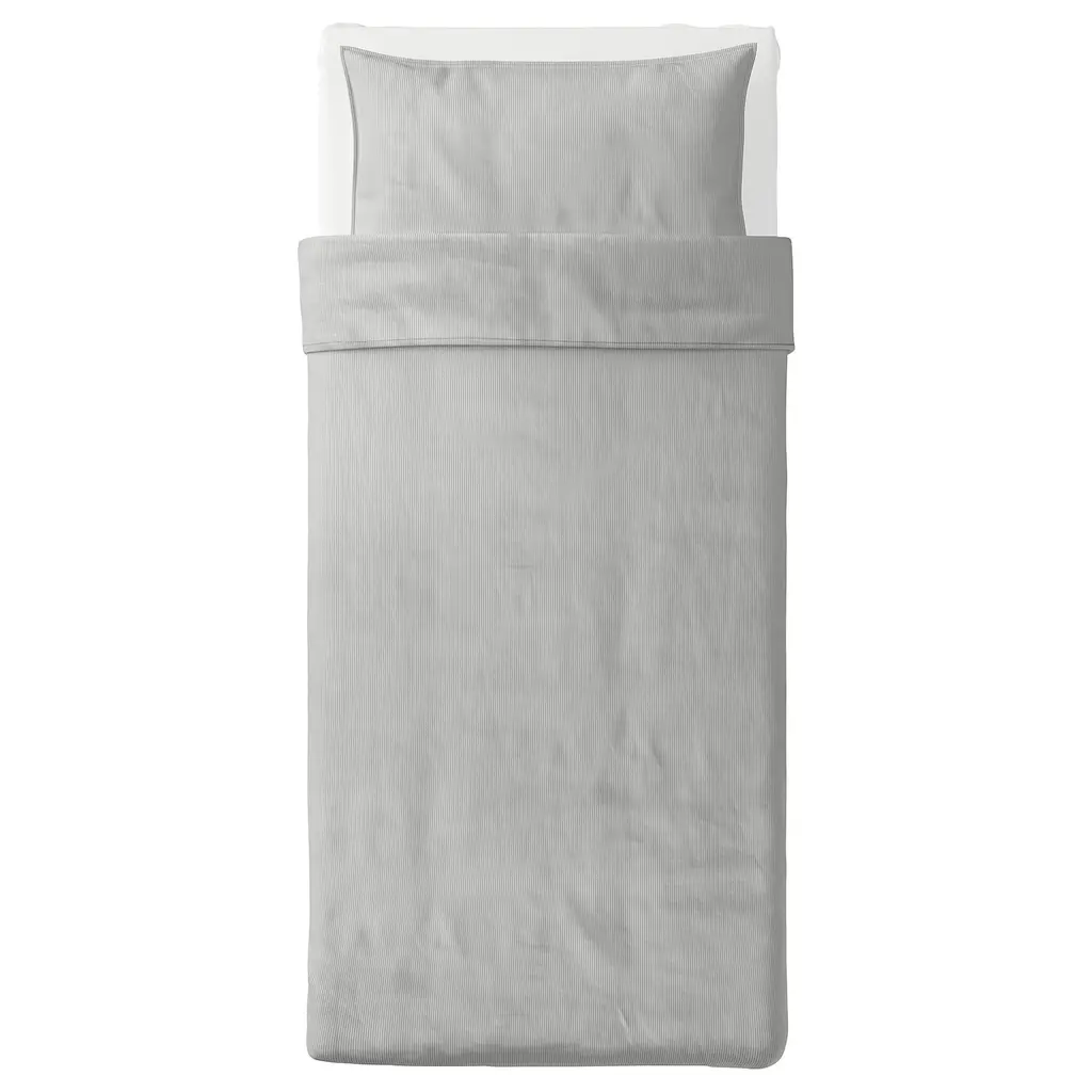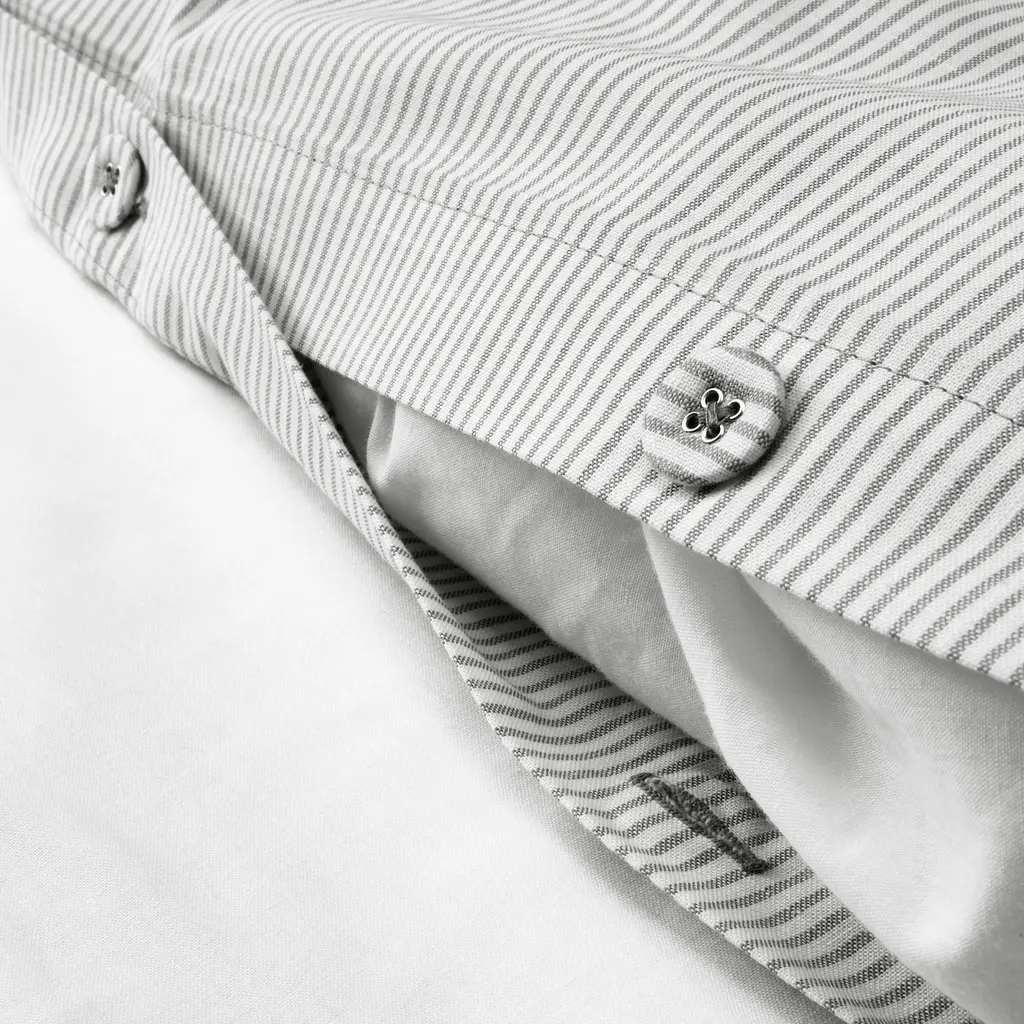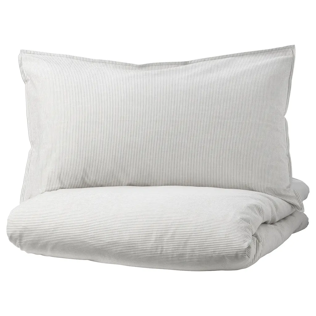 BERGPALM Duvet cover and pillowcase(s) - gray/stripe Twin. Yarn-dyed; the yarn is dyed before weaving; gives the bedlinens a soft feel. Made of 100% cotton - a natural and durable material that becomes softer with every wash. Decorative buttons keep the duvet in place. 118 thread count.