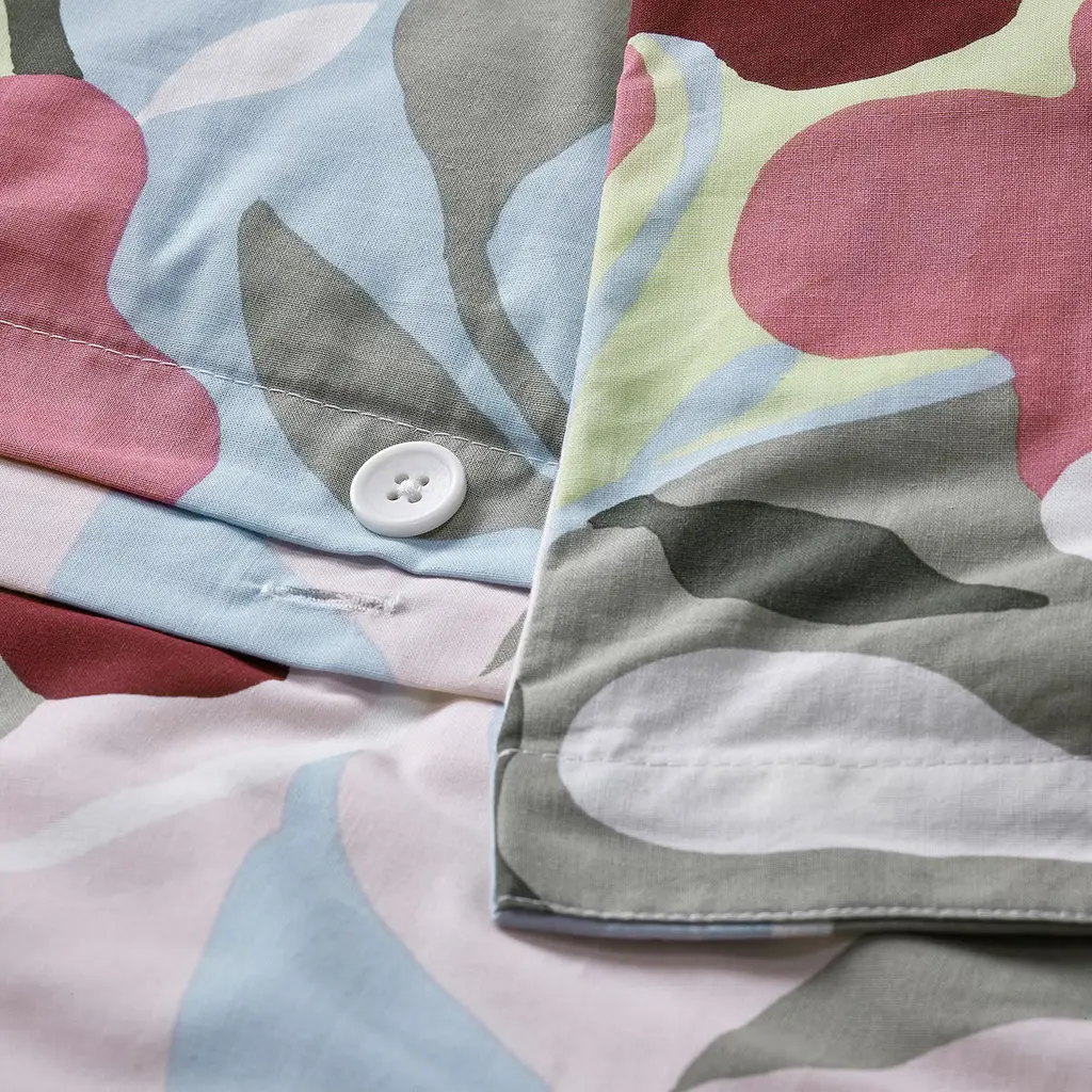 KORSKOVALL Duvet cover and pillowcase(s) - multicolor/floral pattern Twin. The cotton/viscose blend gives you a soft, silk-like material. The cotton breathes and absorbs moisture while viscose, made from wood pulp, is smooth and has a fine sheen. The buttons keep the duvet in place.