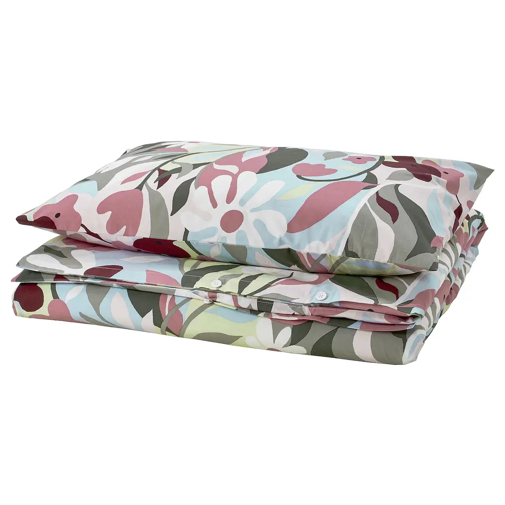 LÖNNHÖSTMAL Duvet cover and pillowcase(s) - multicolor/floral pattern Twin. The cotton/lyocell blend gives you a strong, silky-smooth material. Both fibers are soft, breathable and absorbent. Lyocell, made from wood pulp, is especially good at absorbing moisture from your skin. 200 thread count.