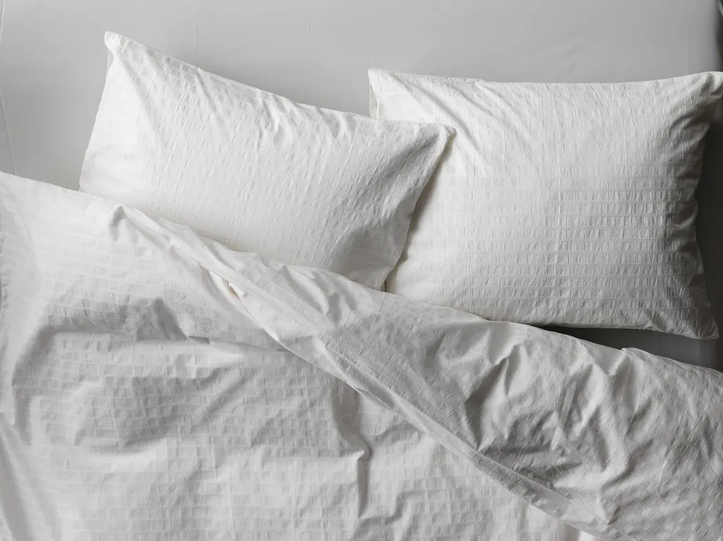 OFELIA VASS Duvet cover and pillowcase(s) - white Twin. Twin includes 1 Queen pillowcase, Full/Queen includes 2 Queen pillowcases and King includes 2 King pillowcases. 205 thread count. Available in several sizes. Includes: 1 Twin duvet cover and 1 pillowcase.