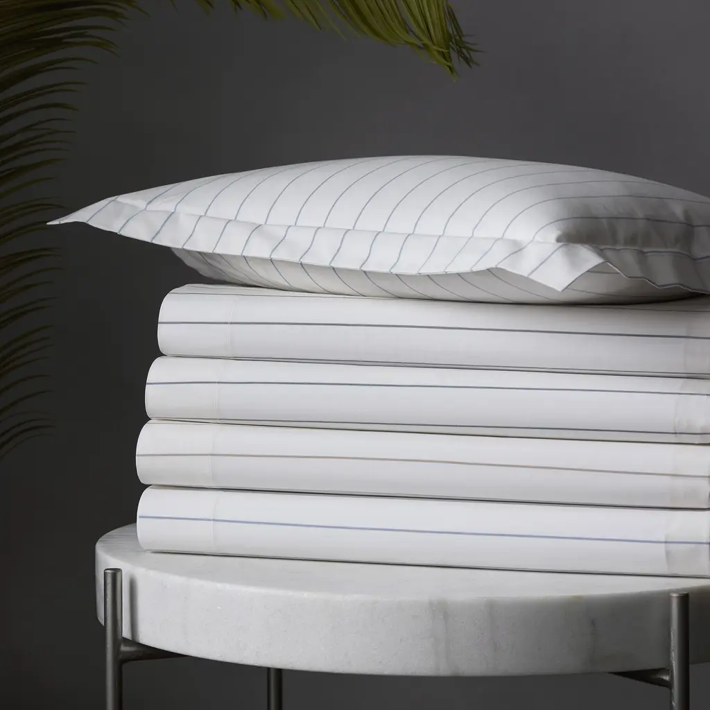 This ultra-soft bedding by Matouk features a crisp pinstripe design crafted from long-staple cotton percale for a refined, enduring quality. The Amalfi collection is versatile enough for effortless mix-and-match styling.