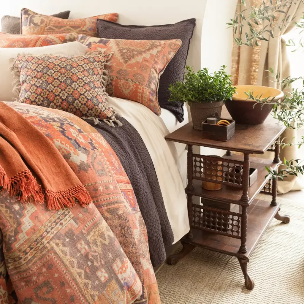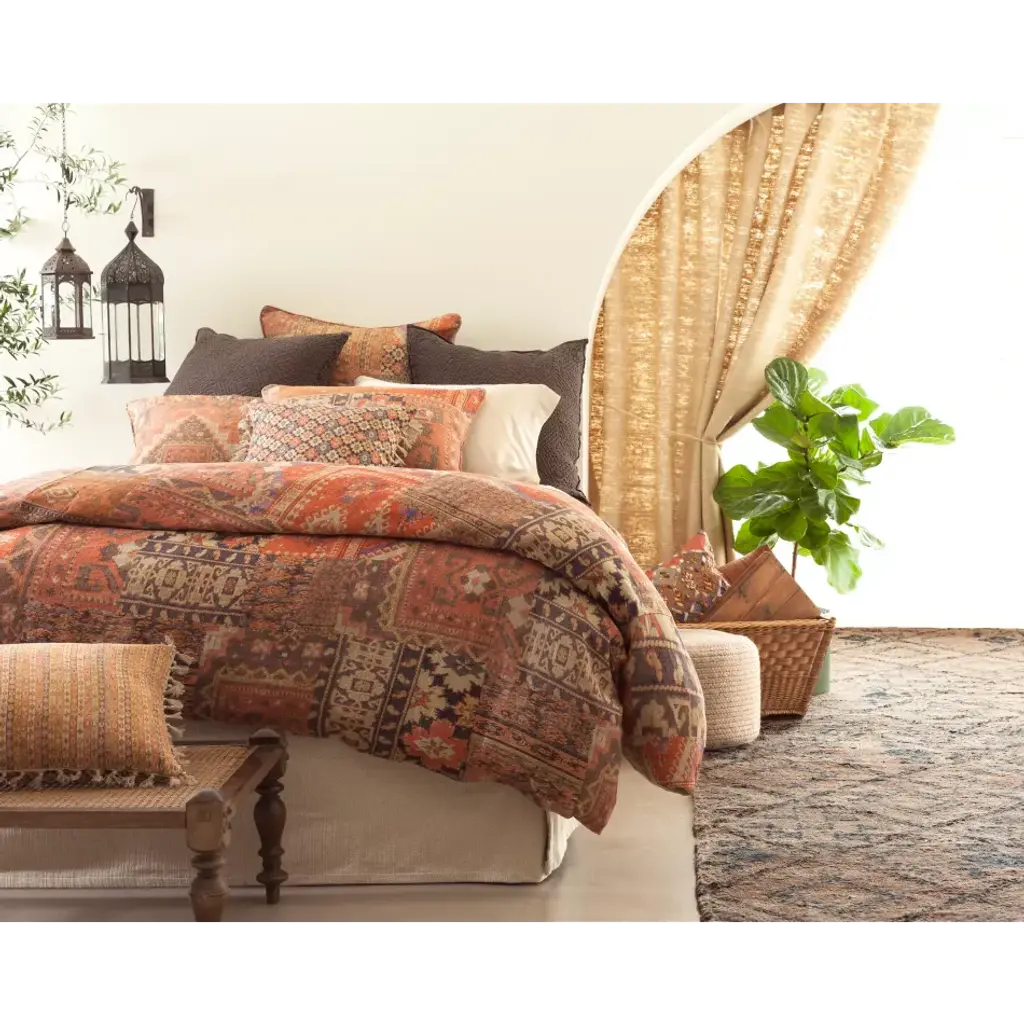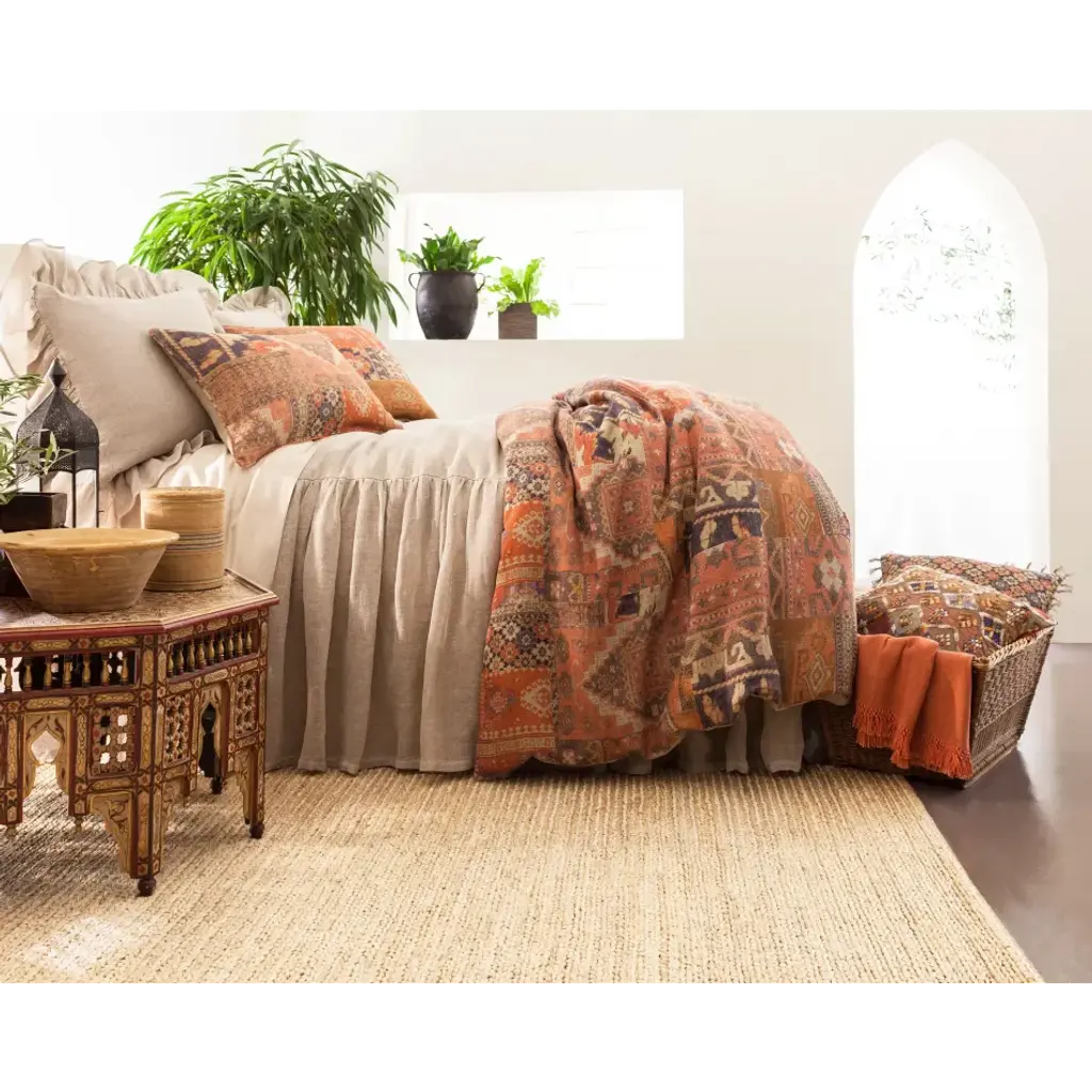 Go East with this colorful linen duvet cover, digitally printed with a patchwork of kilim-inspired patterns in shades of blue, terra-cotta, java, and brick. Coordinates beautifully with both neutrals and patterns, including our Laundered Cotton throws, Linen Mesh coordinates, and Anatolia decorative pillows and throw. • 100% linen. • Print on front, solid linen back. Pine Cone Hill’s fresh, fun home linens have been making waves in the home design industry since 1994, when Annie Selke started the business with a sewing machine in her dining room. From the very beginning, Annie’s Pine Cone Hill creations have consistently wowed the home décor industry. Each month, her innovative designs and interiors are splashed liberally throughout the pages of top shelter magazines.
