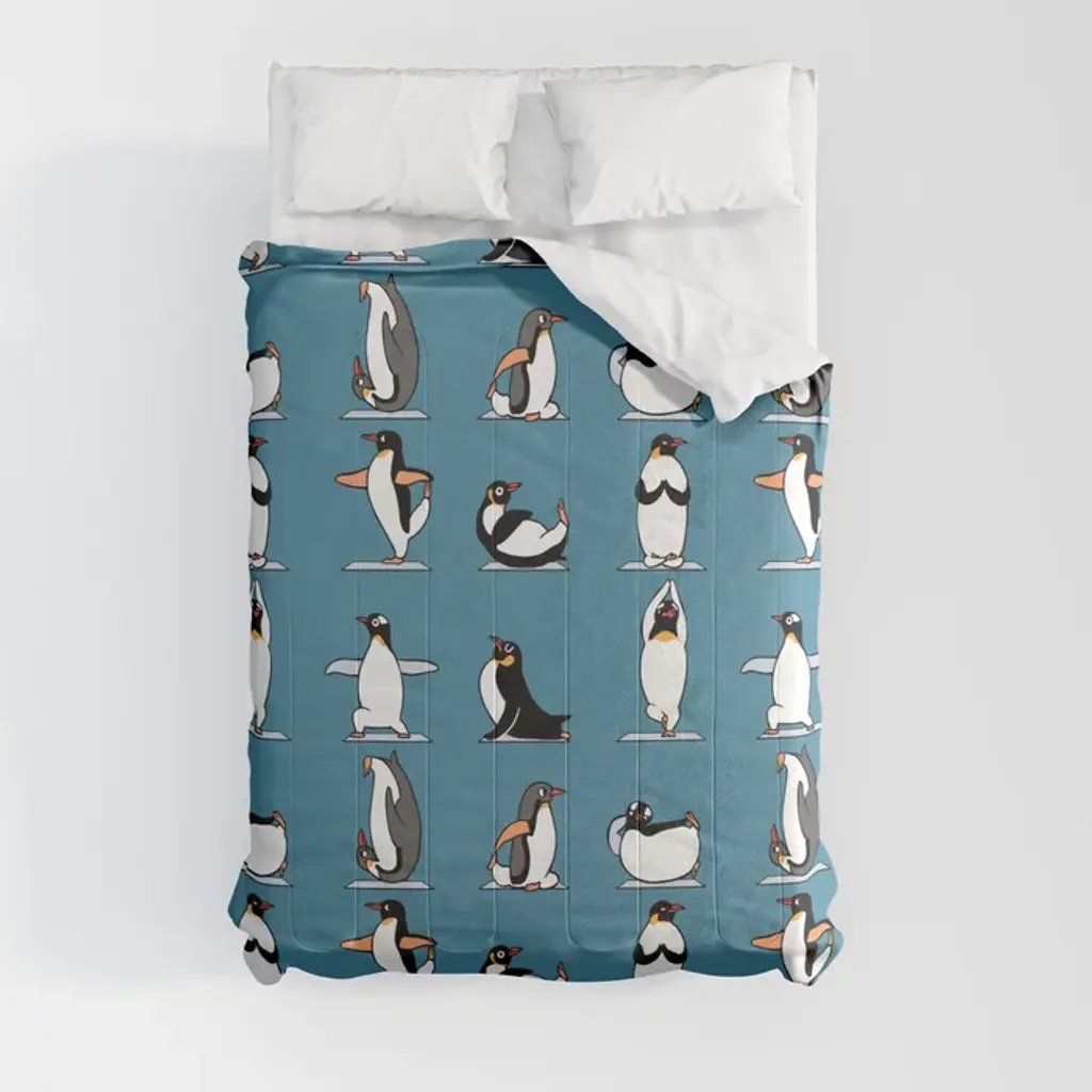 Blåvingad Duvet Cover And Pillowcase(s) - Penguin Pattern/light Turquoise Twin