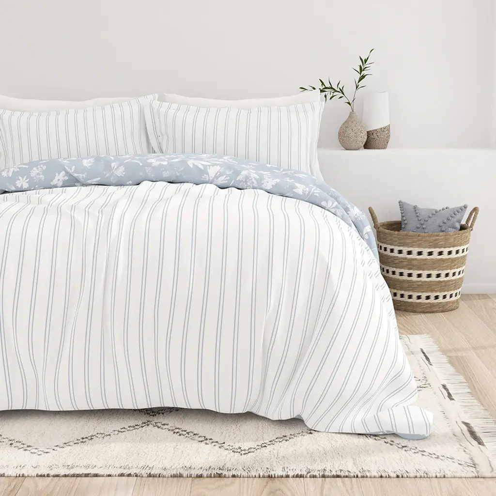 Give your old comforter or duvet insert a quick refresh with this reversible patterned duvet cover set. Featuring a beautiful variety of prints and patterns, our premium yarns are twice as durable as cotton, wrinkle resistant. Each piece has been double brushed for a super soft, comfortable feel. Featuring a reversible design of aesthetically matched patterns and colors, this set offers a 2-in-1 look, ideal for making quick style changes to your sleep space!