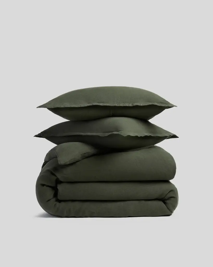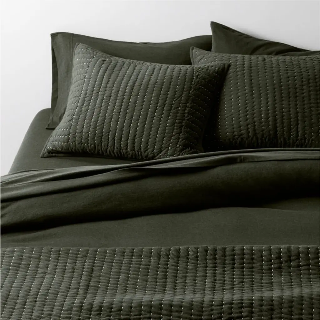 Softer than your favorite t-shirtand just as casual-classicour Cozysoft collection makes a bed you won't want to get out of. Organic cotton knits breathable jersey bedding that's supersoft and irresistibly cozy. Heathered for depth, the dark green-grey fabric serves as a sophisticated neutral. Layer the duvet cover with the coordinating sheets, pillowcases and shams for a look that's understated and inviting.Duvet inserts also available.