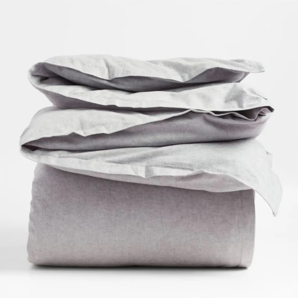 Softer than your favorite flannel shirtand just as casual-classicour Cozysoft collection makes an irresistibly cozy bed. Organic cotton weaves brushed flannel bedding that's supersoft with a touch of texture. Perfect for snuggling on chilly nights, the grey flannel sleeps extra-warm. Our subtly heathered duvet cover layer with the coordinating Cozysoft sheet sets and pillow shams for a cool-season look that's understated and inviting.Duvet inserts also available.
