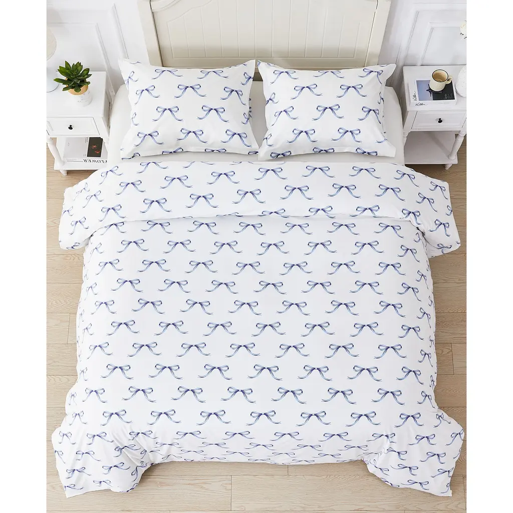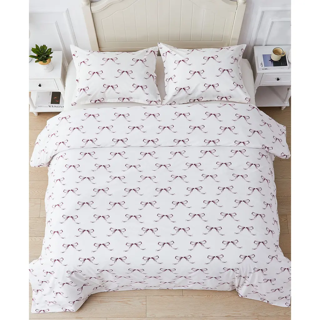 Woven from 100% cotton and pre-washed for softness, Bedford Lane's Crisp Bows percale duvet cover set has the feel of heirloom linens passed down through generations. Featuring a dainty, timeless print, it brings a cozy charm to any space.