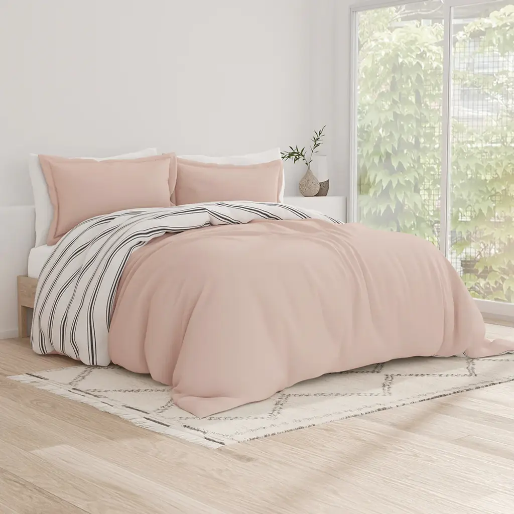 Give your old comforter or duvet insert a quick refresh with this reversible patterned duvet cover set. Featuring a beautiful variety of prints and patterns, our premium yarns are twice as durable as cotton, wrinkle resistant. Each piece has been double brushed for a super soft, comfortable feel. Featuring a reversible design of aesthetically matched patterns and colors, this set offers a 2-in-1 look, ideal for making quick style changes to your sleep space!