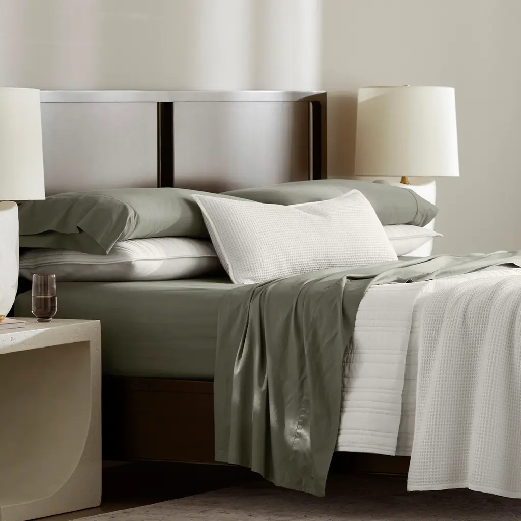 Take your bed to the next level for the ultimate night's sleep. Long staple, 300 thread count cotton in a buttery soft sateen weave for subtle luster and luxurious weight. Heavier and softer than our percale and naturally wrinkle resistant, it will become sueded with wear and continue to soften with use and every wash.