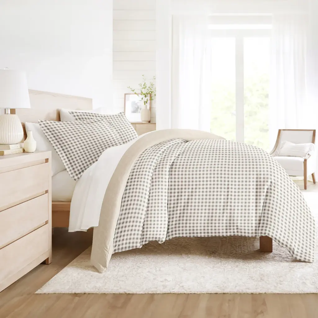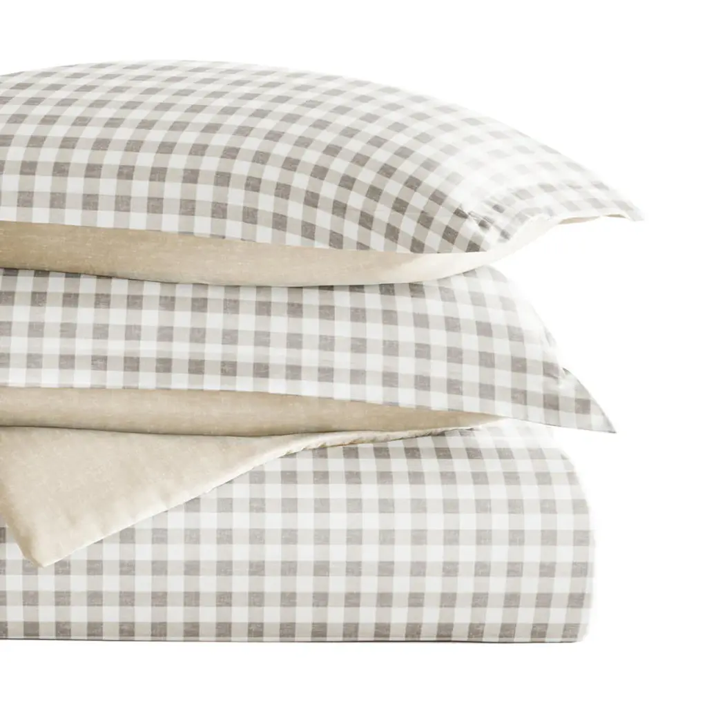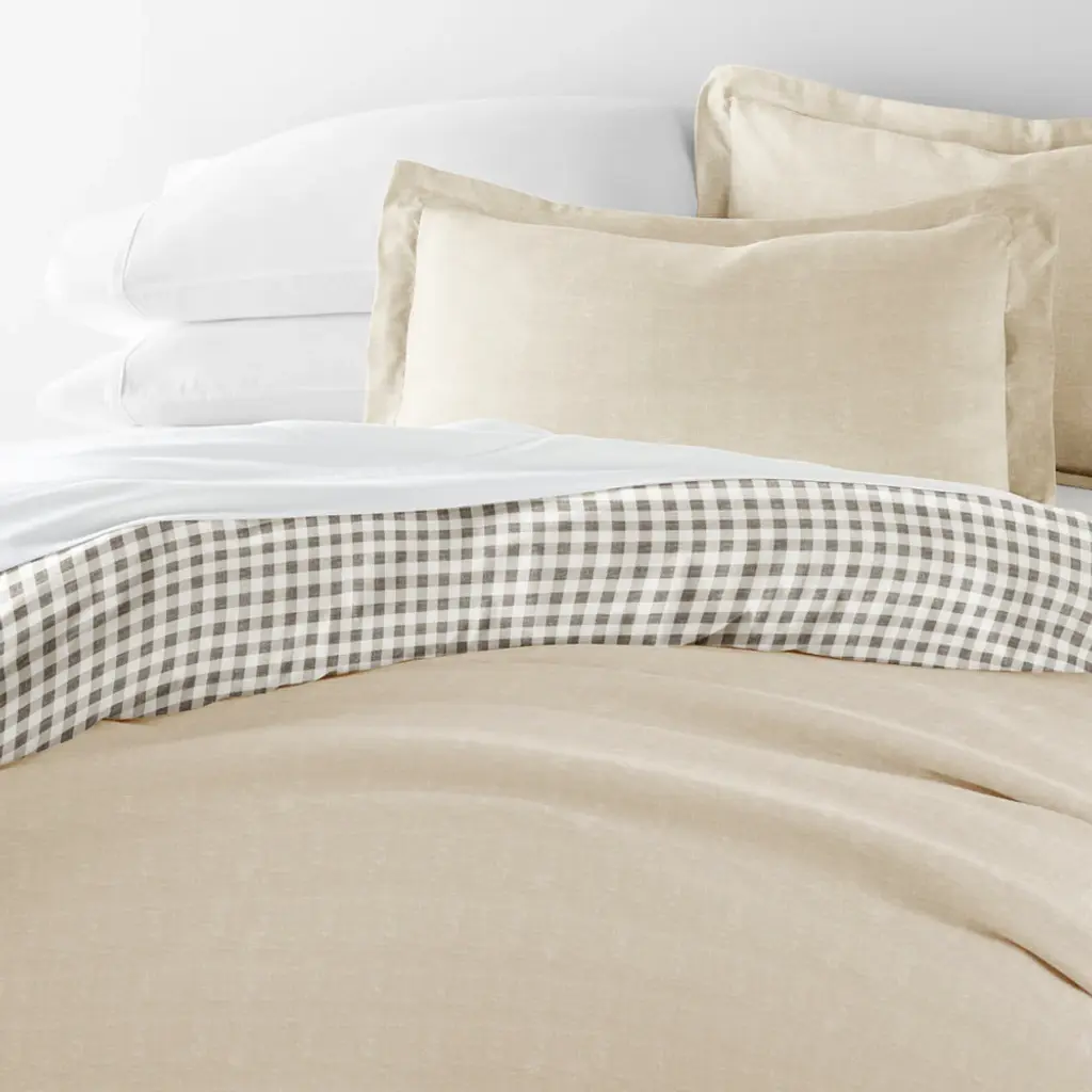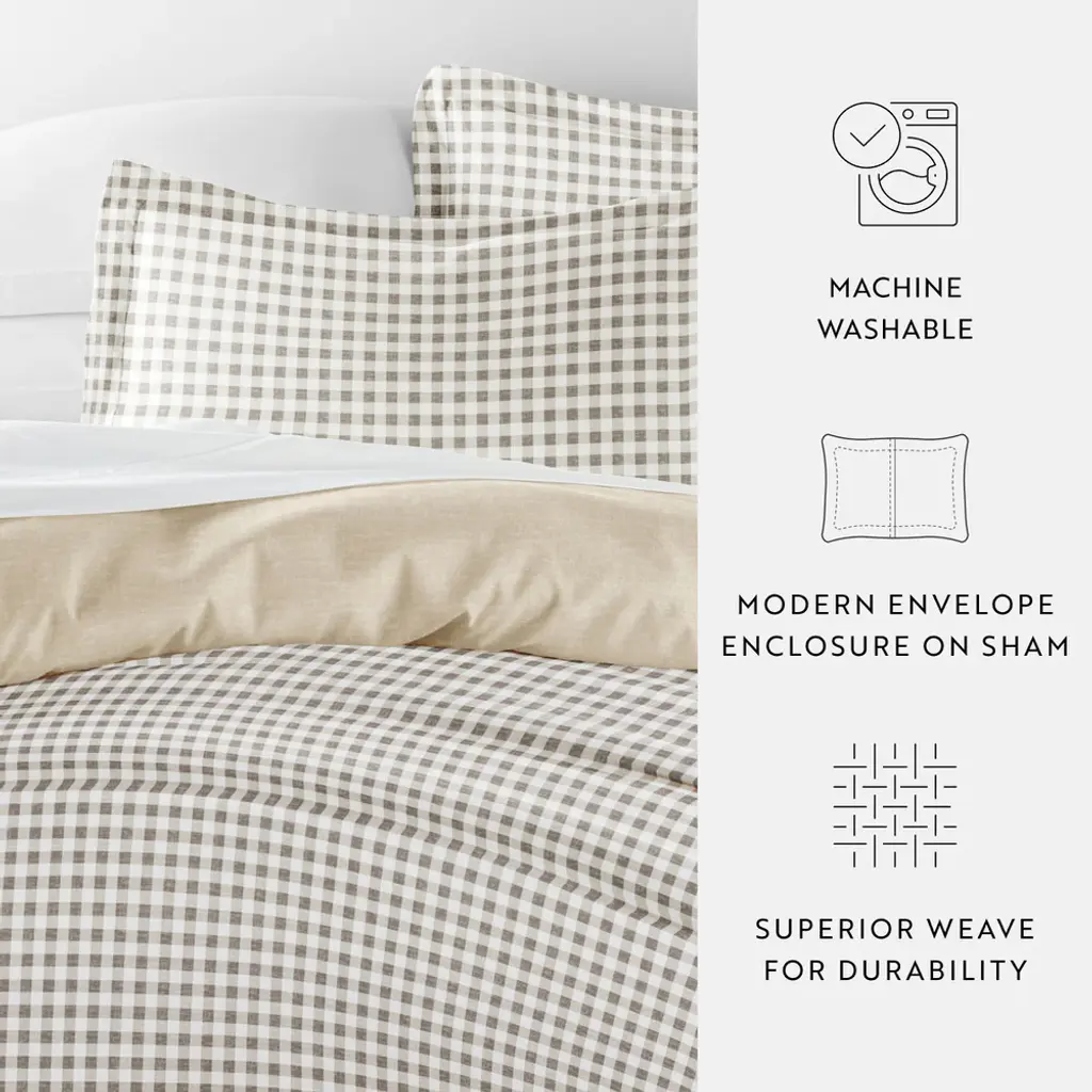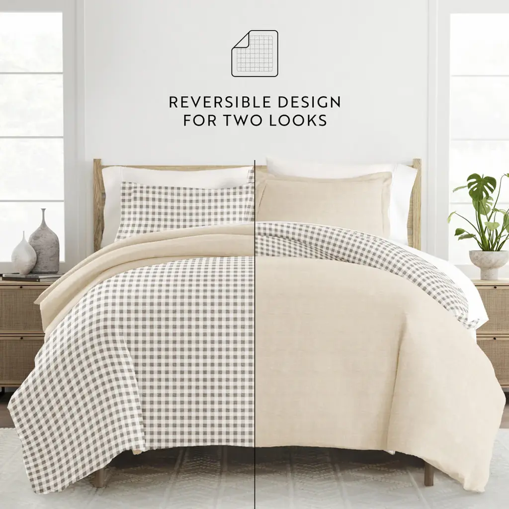 Gingham Check Pattern 3-Piece Reversible Duvet Cover Set