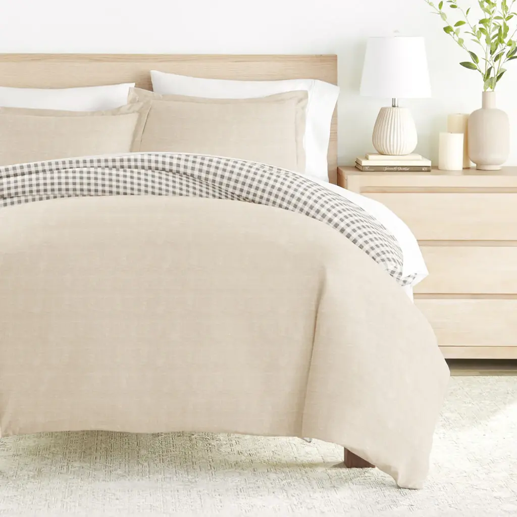 Give your old comforter or duvet insert a quick refresh with this reversible patterned duvet cover set. Featuring a beautiful variety of prints and patterns, our premium yarns are twice as durable as cotton, wrinkle resistant. Each piece has been double brushed for a super soft, comfortable feel. Featuring a reversible design of aesthetically matched patterns and colors, this set offers a 2-in-1 look, ideal for making quick style changes to your sleep space!