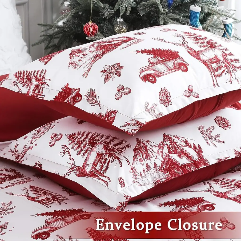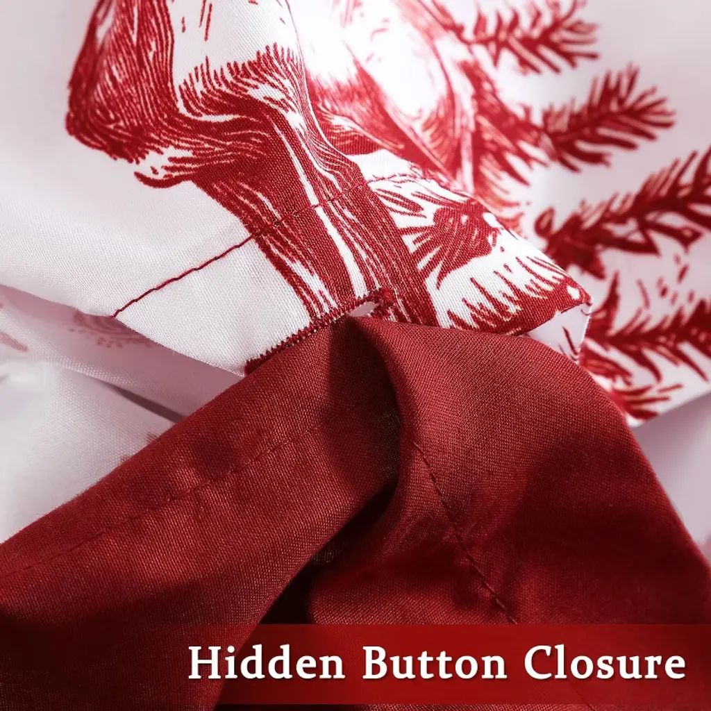 Bring festive magic to your bedroom with this reversible Christmas duvet cover. Crafted from luxuriously soft brushed microfiber, it ensures a cozy and comfortable night's sleep. The practical design includes eight corner ties to keep your duvet insert securely in place and a hidden button closure for an elegant, durable finish. Easy to care for¡ªsimply machine wash cold and tumble dry low. With its joyful holiday design, this duvet cover set also makes for a perfectly thoughtful and gorgeous Christmas gift. (inserts not included)