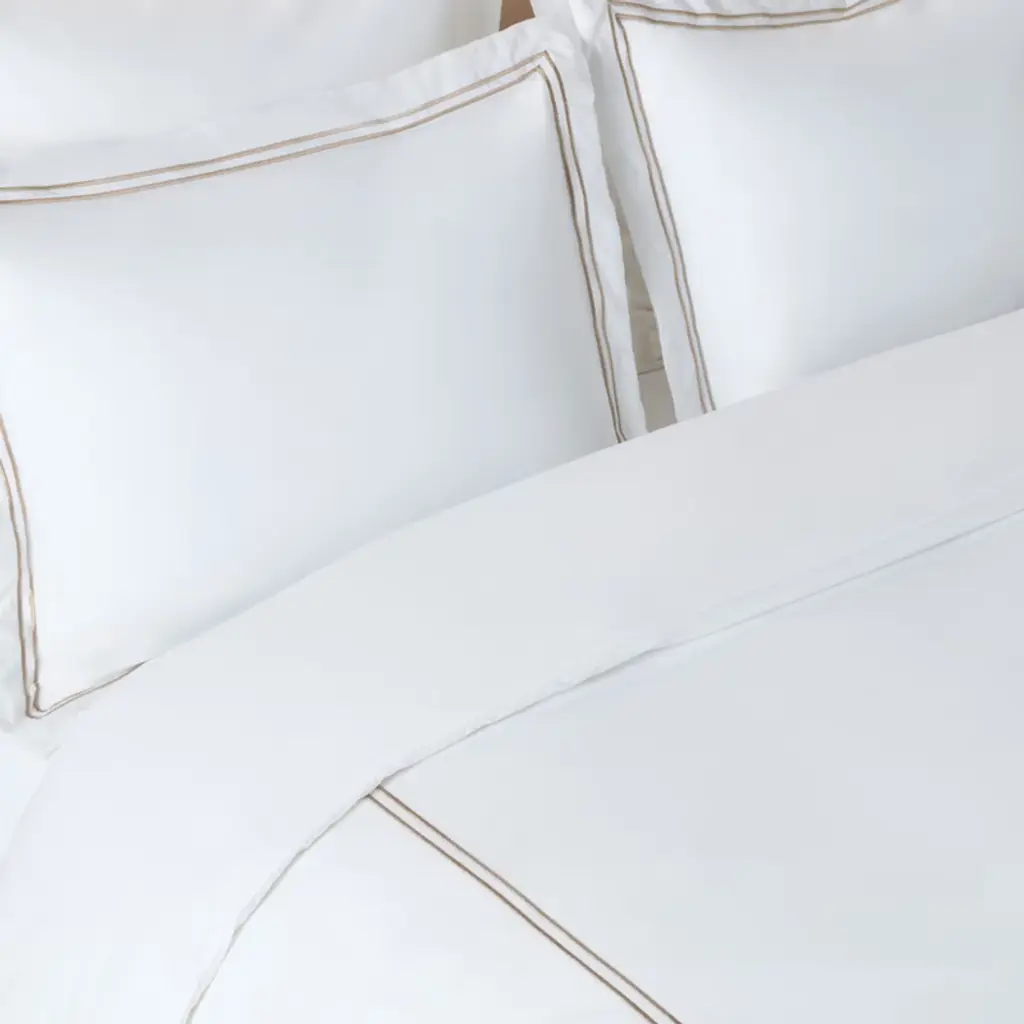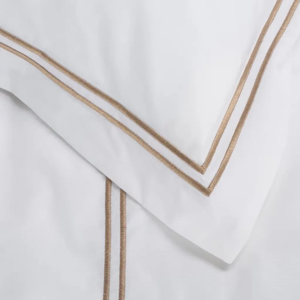 Hotel Collection 300tc Percale 3-piece Duvet Cover Set, 2-line Embroidered, Full/queen - Dvt1001 - Golden Taupe/white - Safavieh