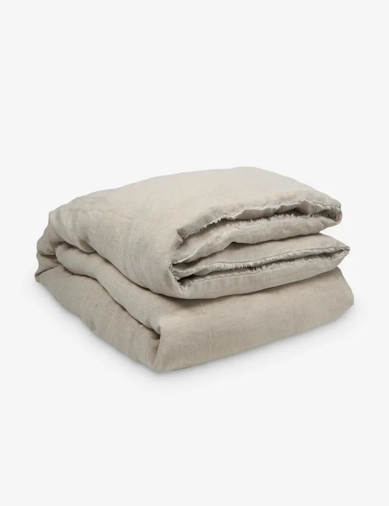 The Hunter collection brings the signature details of the bestselling Logan stripe collection to a new solid color palette. Hunter showcases 100% hand-loomed linen in warm heathered tones, with an eye-lash fray around the edges. Each detail on the Hunter duvet cover, from the already-soft washed linen to the mother-of-pearl closures and inner corner duvet ties, transforms your bed into the ultimate retreat.