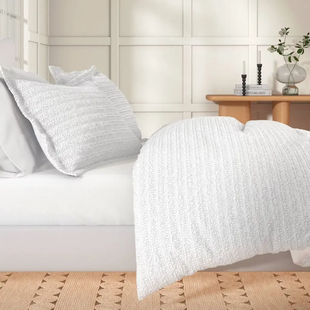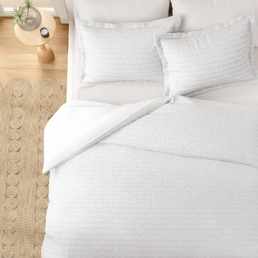 Isla Jade Full/queen Waffle Weave Textured Duvet Cover And Sham Set White