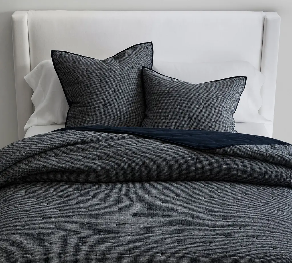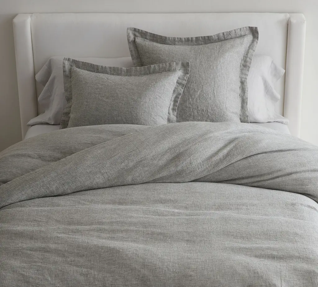 Inspired by traditional Portuguese baskets, the raised black and beige graphic pattern functions as a neutral. Jacquard woven of 100% organic cotton, black duvet cover gets an added layer of texture from a stonewash process, making it the perfect mix of vintage and modern. Duvet cover flips to black cotton percale back. Pair with matching shams to complete the look. CB2 exclusive.