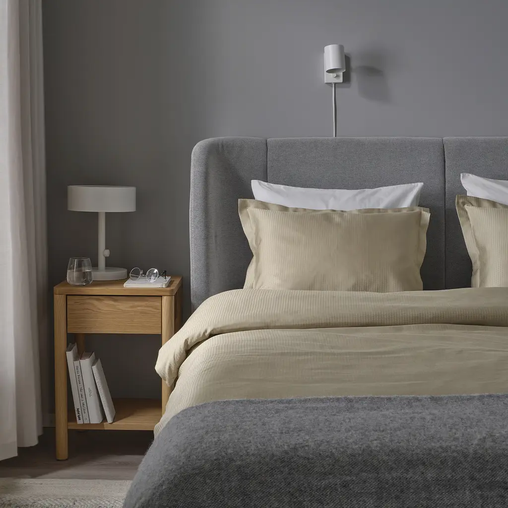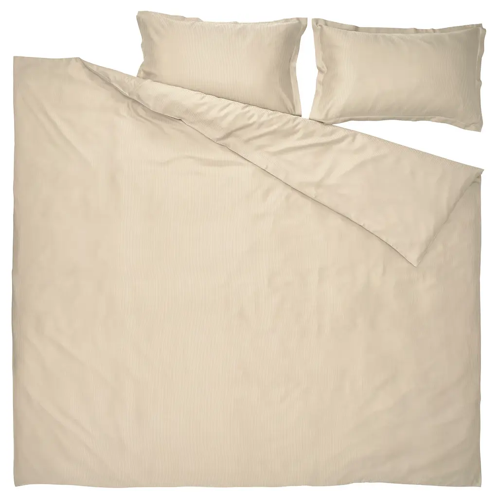 LÄKEVÄNDEROT Duvet cover and pillowcase(s) - beige Full/Queen (Double/Queen). Lyocell is a silky-smooth material made from wood pulp. It is absorbent and good at drawing moisture away from your skin, helping your body to maintain a comfy, even temperature. The buttons keep the duvet in place.