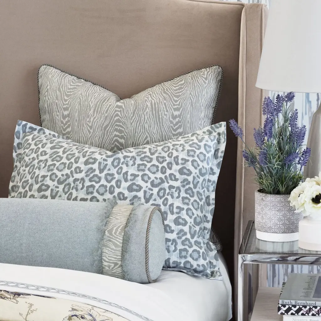 The graceful azaleas on the one side of this duvet cover are complemented by solid pewter fabric on the other. The cord trim along the edges adds a tailored touch, while ties on all four corners of the cover's interior help keep the comforter in place. Button closure.