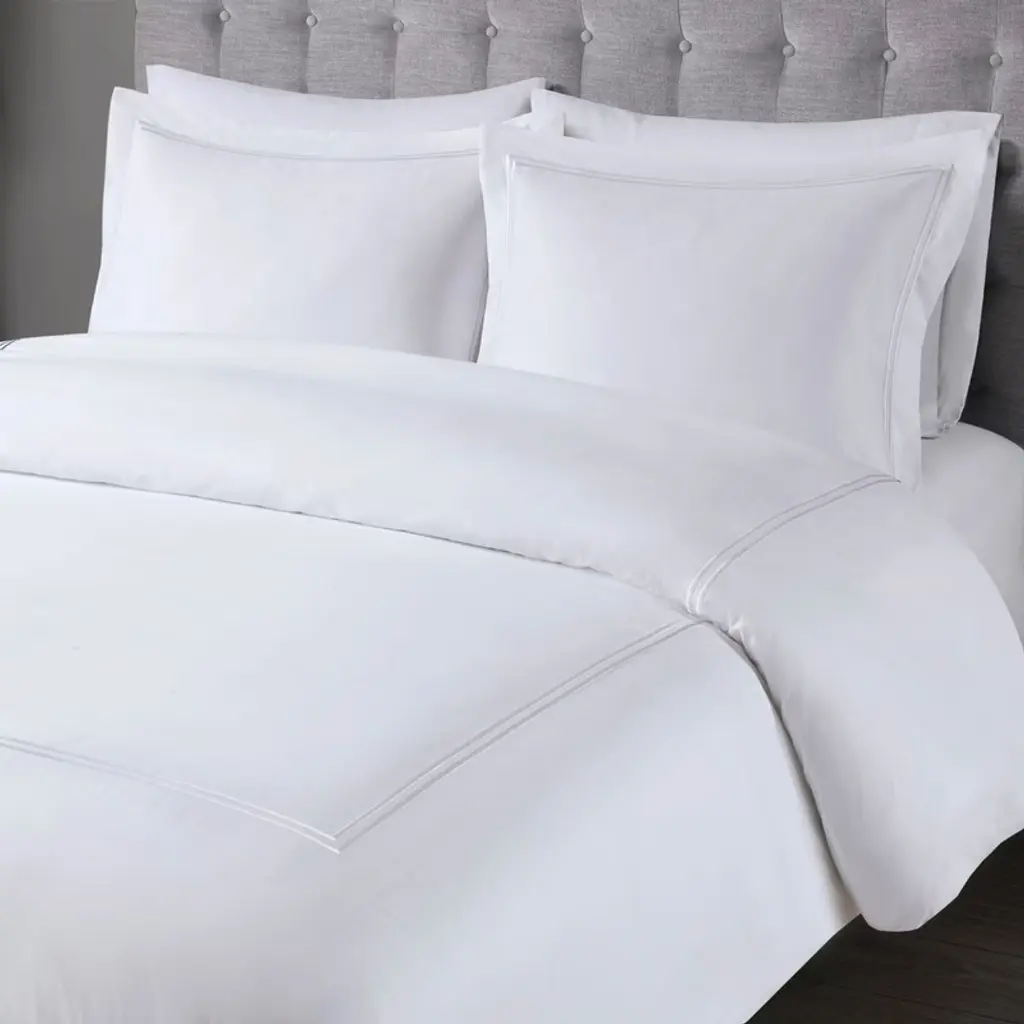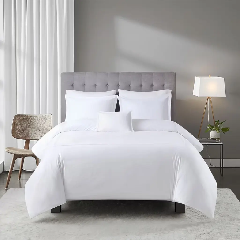 Indulge in the ultimate comfort with our 500 thread count cotton sateen Duvet cover set. Made from 100% soft cotton, this set includes a duvet cover with a double-row striped embroidered border for a touch of elegance. The OEKO-TEX certification guarantees it to be free of harmful substances, while the removable duvet cover with corner ties and zipper closure ensures easy care and maintenance. Experience hotel luxury every night with this refined comforter set.