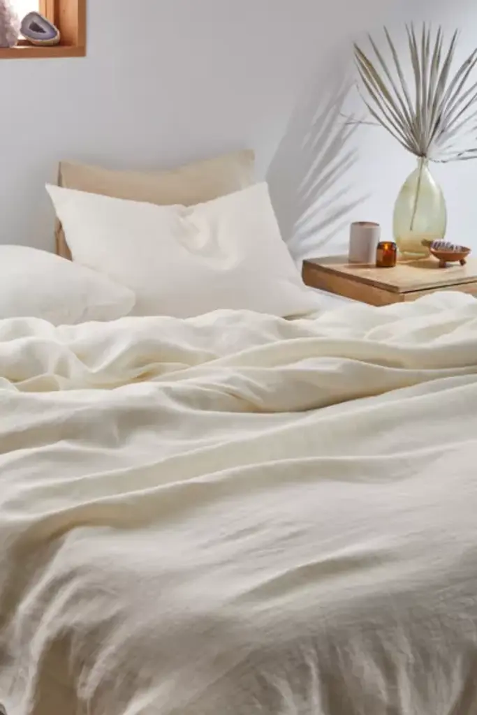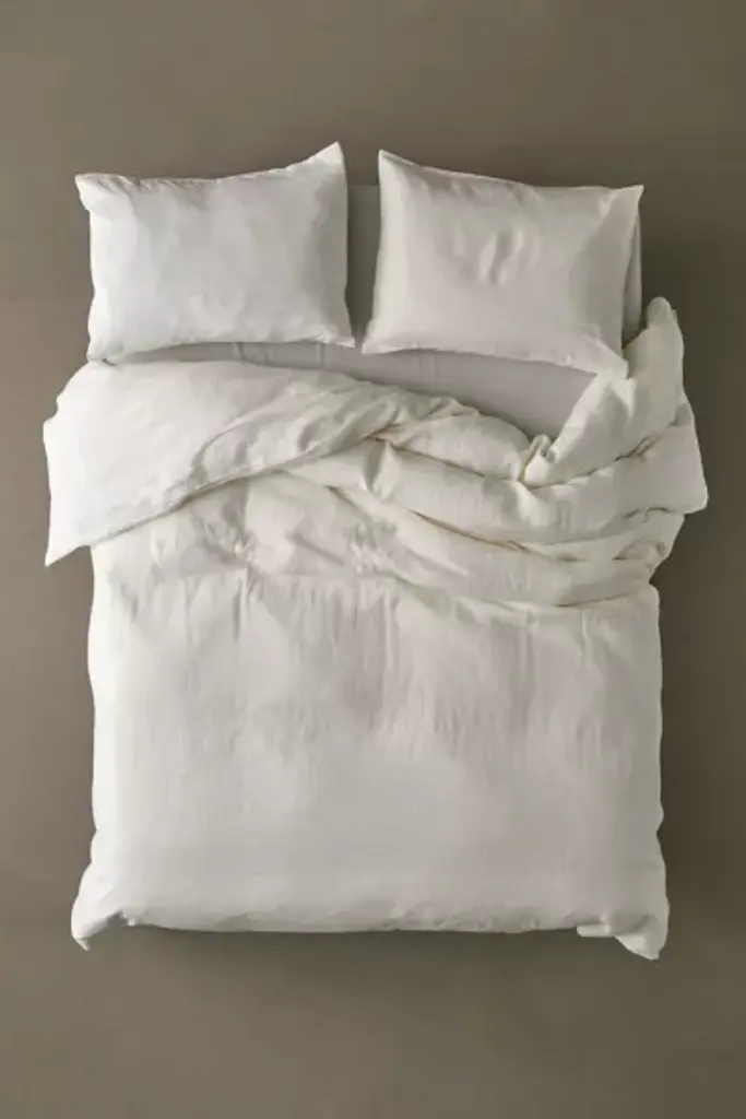 A classic you’ll never tire of, this duvet cover by MagicLinen is made from European flax with an inviting interpretation of minimalist signatures. Stone-washed for softness, it features coconut buttons offering easy access when you want to remove on wash day. Duvet insert sold separately. Due to the special dyeing techniques, the duvet cover you receive may vary slightly in color from what’s pictured. OEKO-TEX certified. **Content + Care** \- 100% European flax \- Machine wash \- Imported **Size** Full/Queen \- Dimensions: 90”l x 88”w **Made with Responsible Material** This item was produced using at least 50% responsible materials. These materials can include recycled content, textiles made with responsible sourcing or any components externally certified for reduced environmental impact.