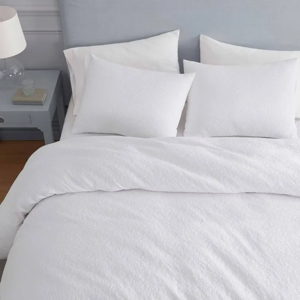 Bring timeless elegance to your bedroom with the Martha Stewart Garden Trellis Duvet set. Beautifully crafted in a cotton-rich jacquard, this set features a delicate floral pattern that adds subtle texture and a touch of refinement to any space. The crisp sparkling white palette offers a clean, calming aesthetic, while the cotton-rich fabric provides breathable softness and comfort perfect for year-round use. Thoughtfully designed for both style and function, this set makes everyday luxury feel effortless. Machine washable for easy care.